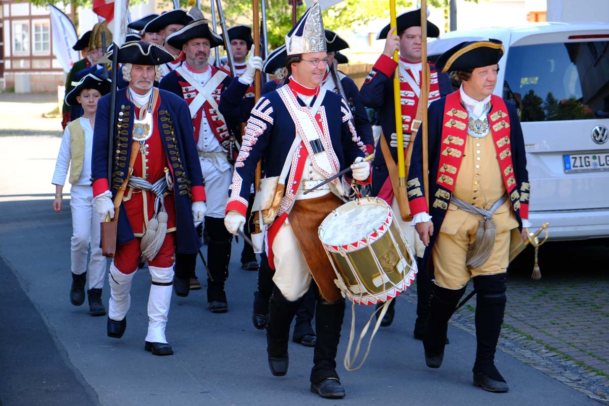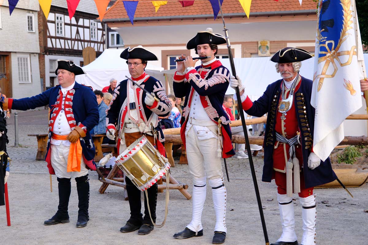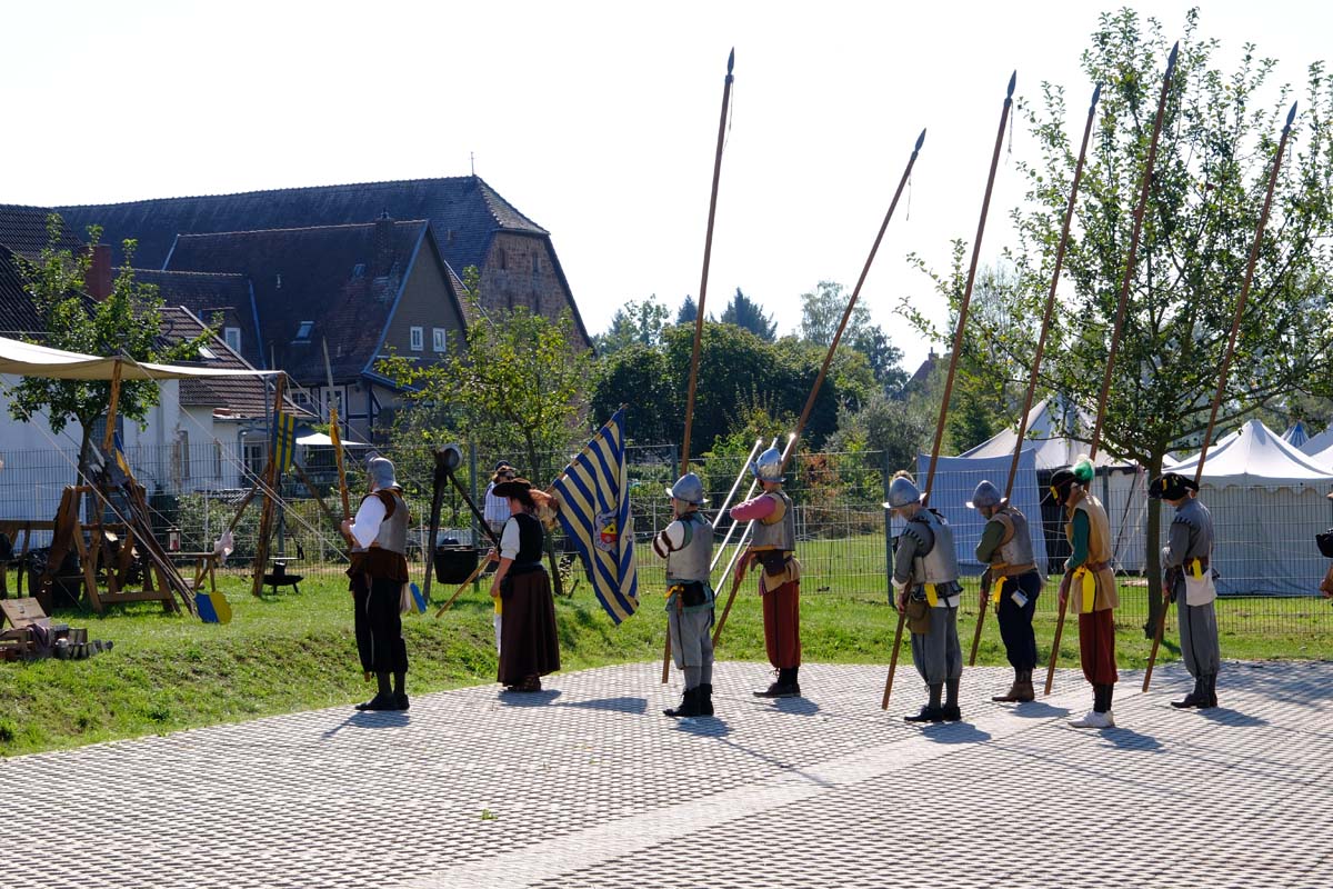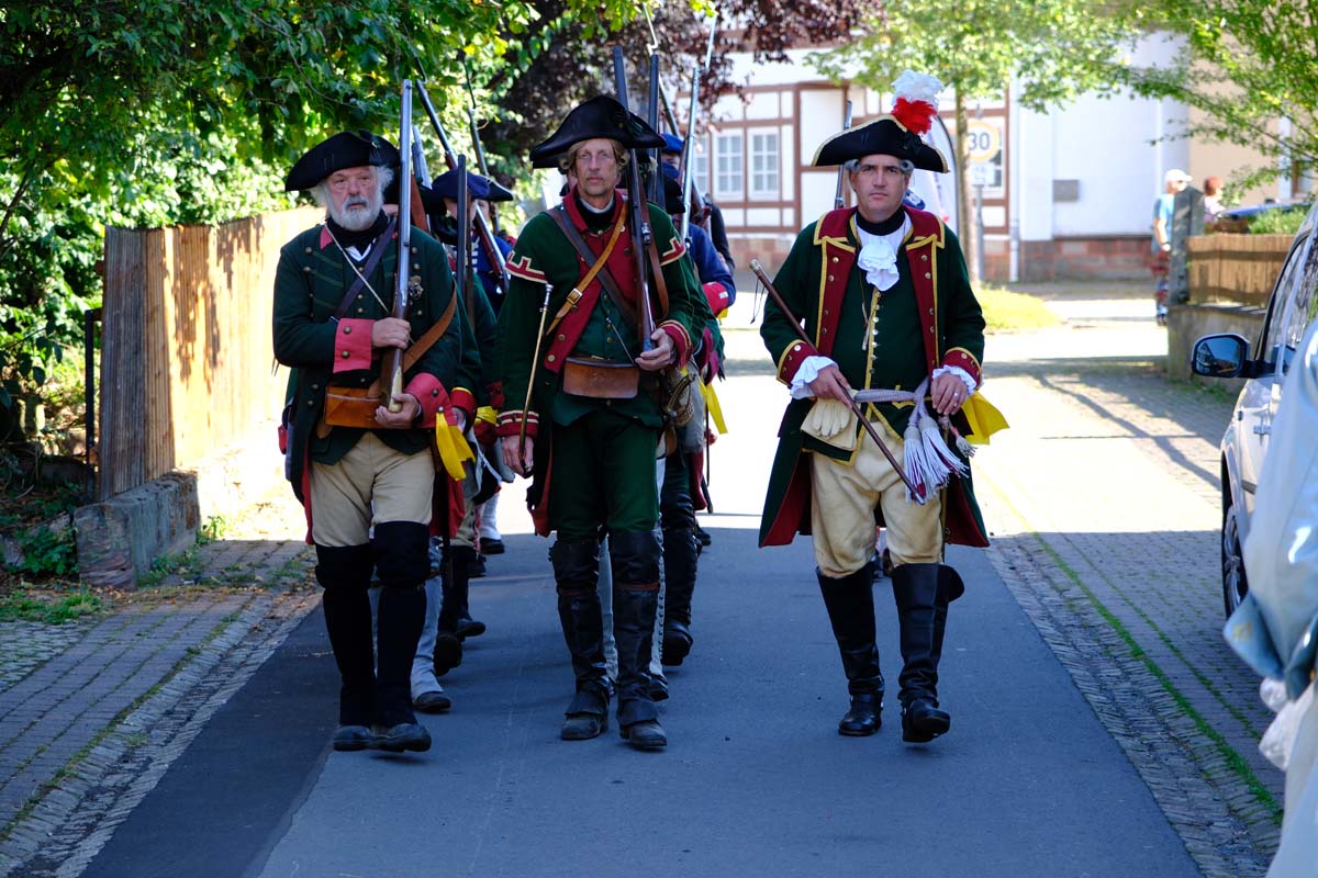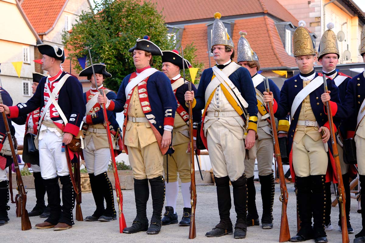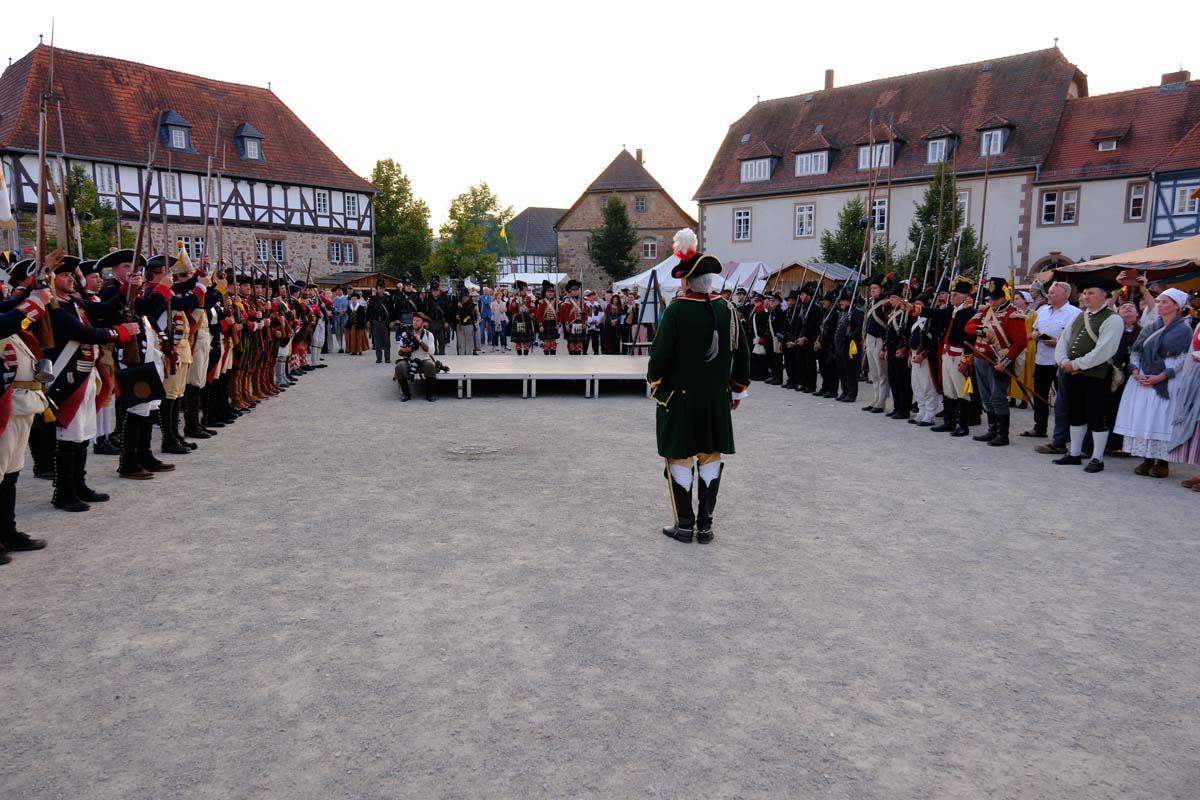 Zwischen Konfirmation und Viele Besucher sind festlich oder bäuerlich gewandet und treffen überall auf Soldaten unterschiedlicher Länder Zeiten. Immer wieder tauchen die Fahnen-Schwenker, Trommler und Fanfarenbläser aus Bretten auf, marschieren Uniformierte durch die Stadt. Die Schwertfechter Nordhessen zeigen genauso ihr Können wie die Bürgergarde aus Neustadt. Nichts für schwache Nerven sind die Lazarettvorführungen, in denen Amputationen und Behandlungen aus der Zeit der großen Schlachten mit tausenden Verletzten geschildert werden.