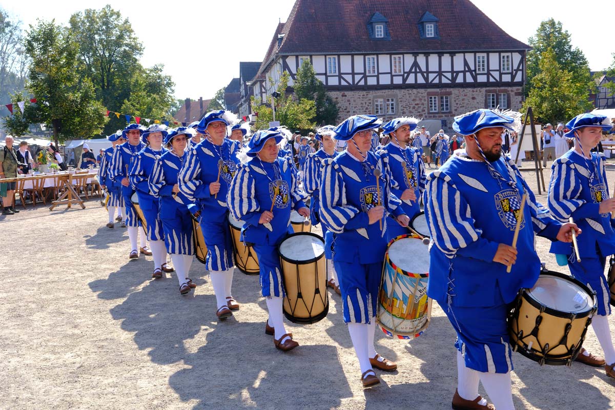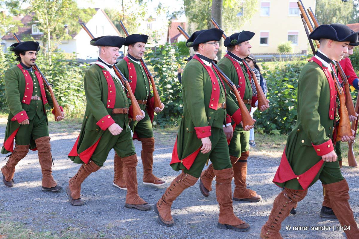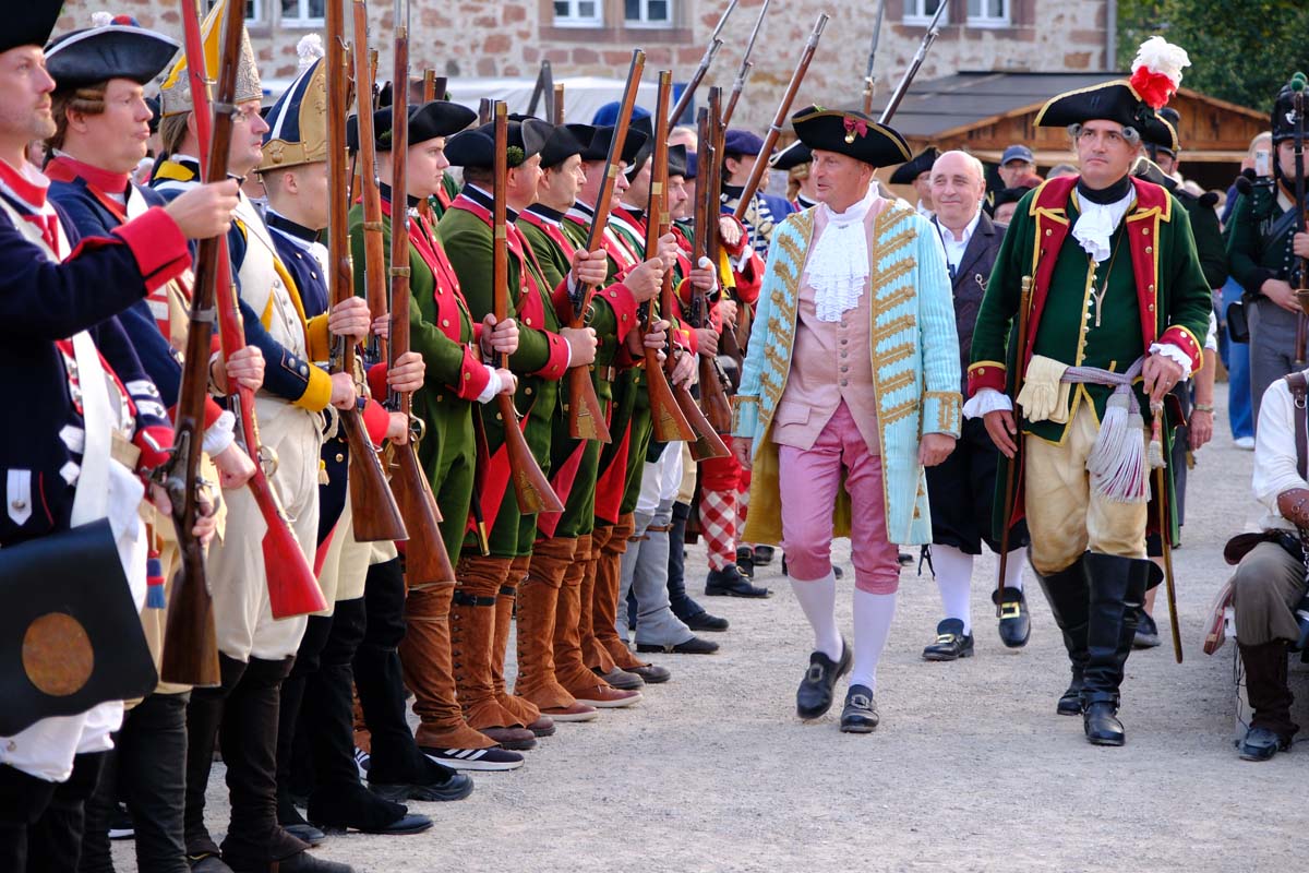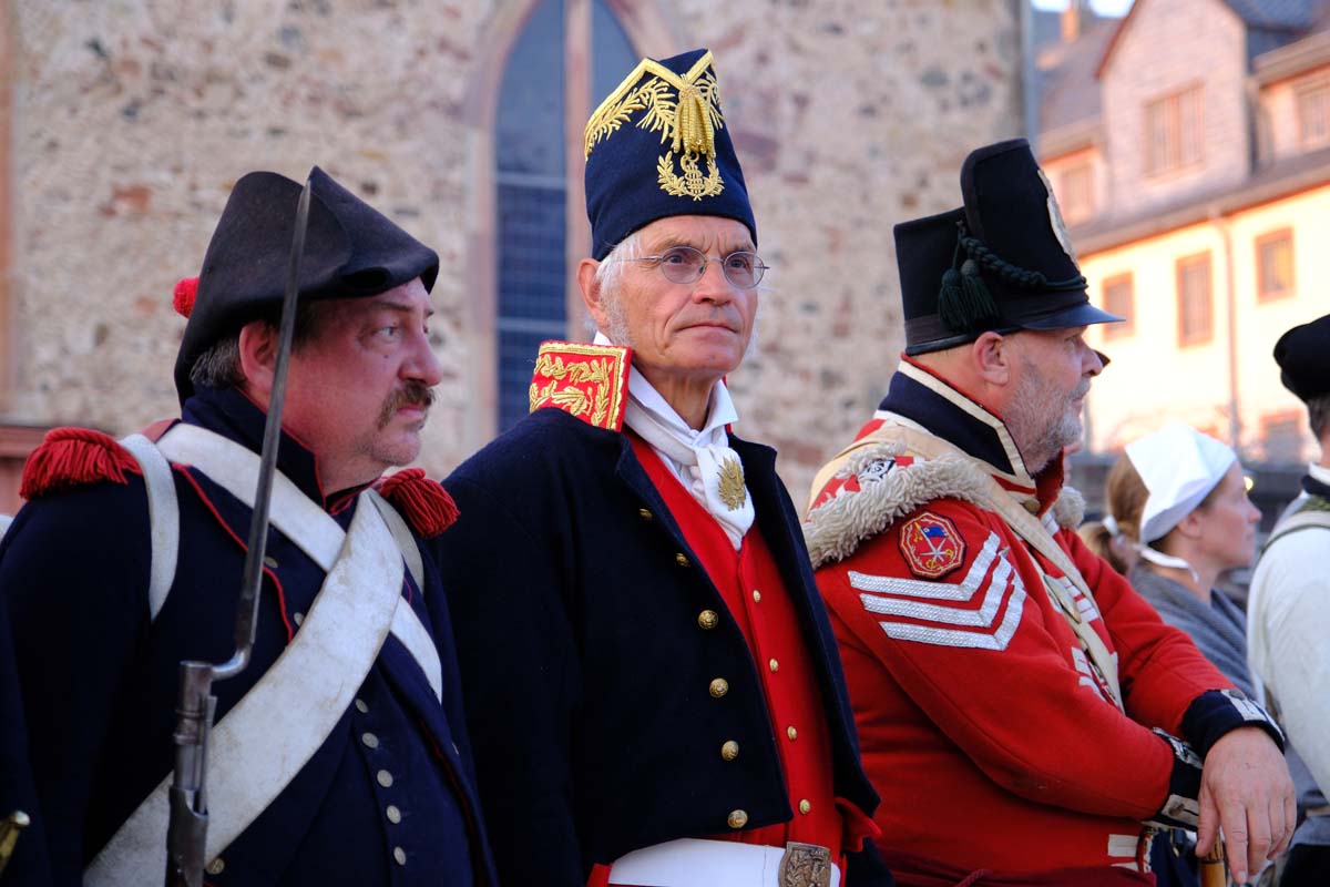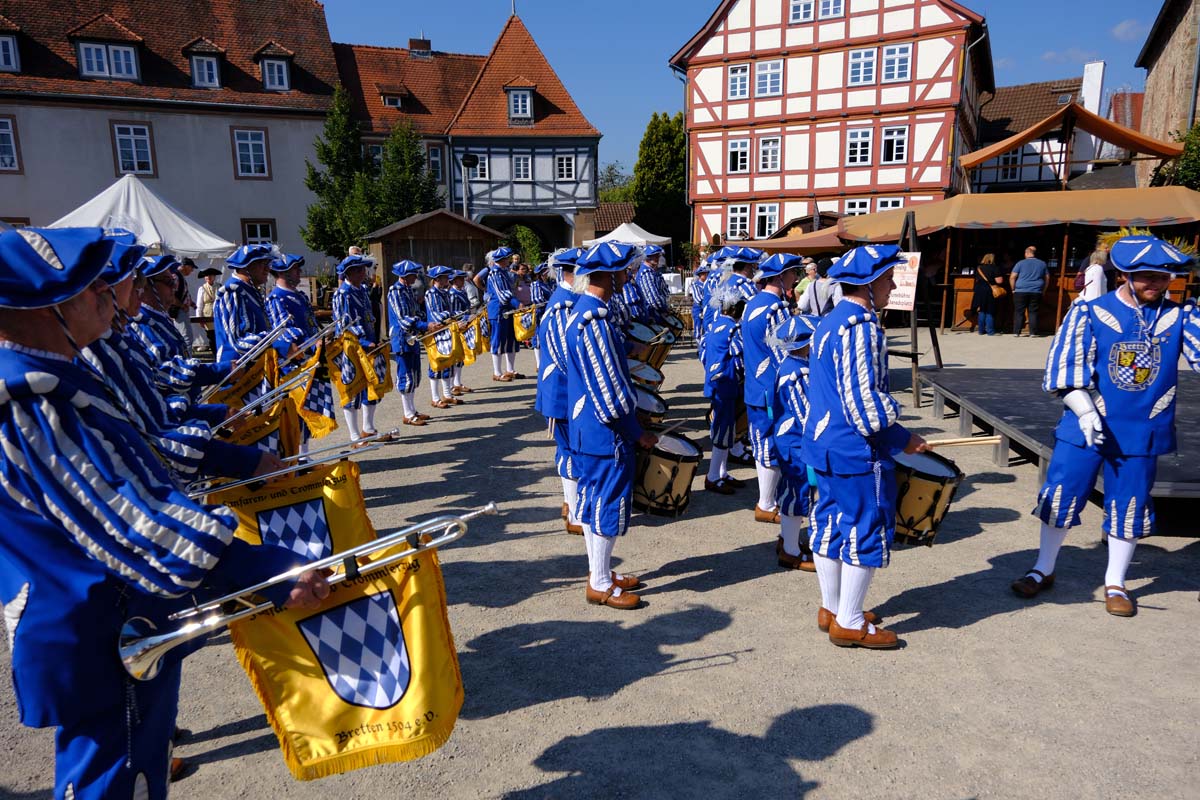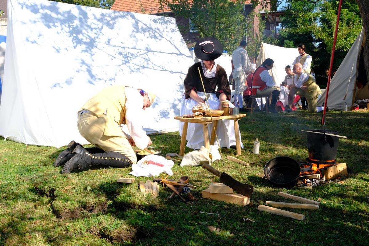 Zwischen Konfirmation und Viele Besucher sind festlich oder bäuerlich gewandet und treffen überall auf Soldaten unterschiedlicher Länder Zeiten. Immer wieder tauchen die Fahnen-Schwenker, Trommler und Fanfarenbläser aus Bretten auf, marschieren Uniformierte durch die Stadt. Die Schwertfechter Nordhessen zeigen genauso ihr Können wie die Bürgergarde aus Neustadt. Nichts für schwache Nerven sind die Lazarettvorführungen, in denen Amputationen und Behandlungen aus der Zeit der großen Schlachten mit tausenden Verletzten geschildert werden.