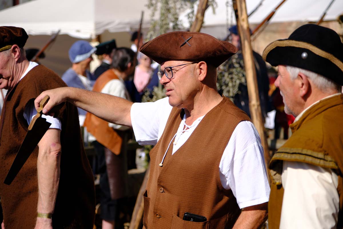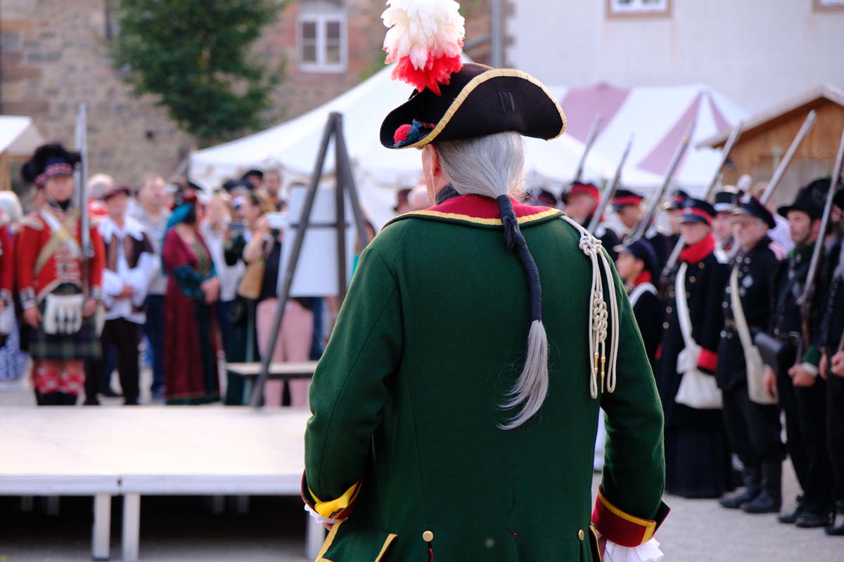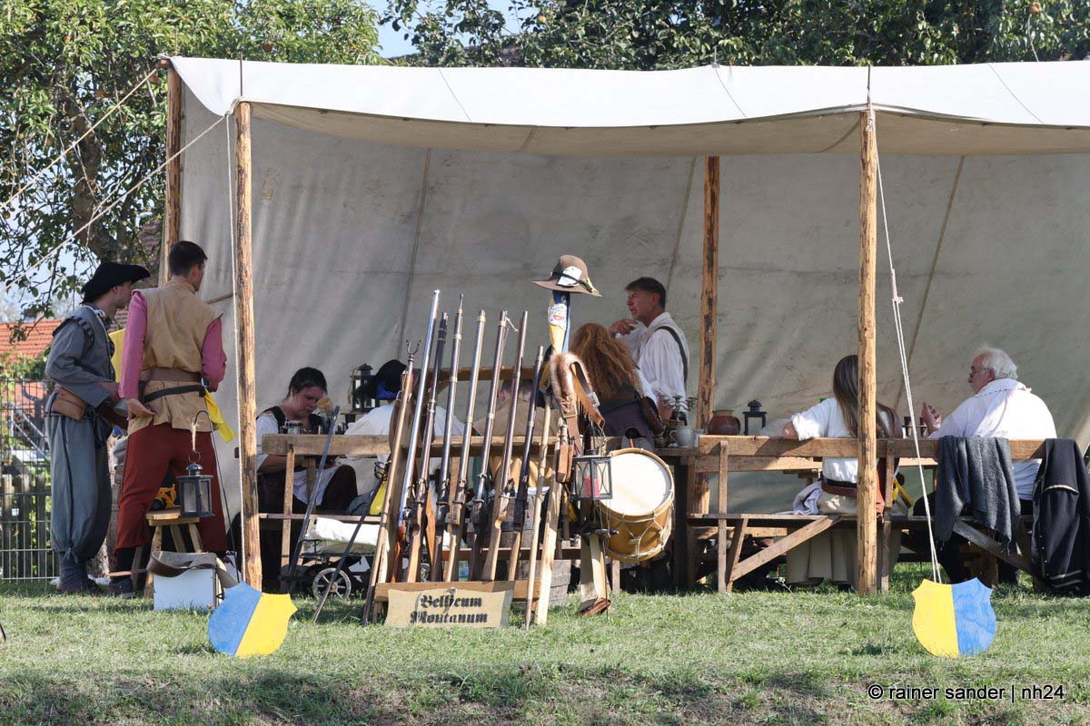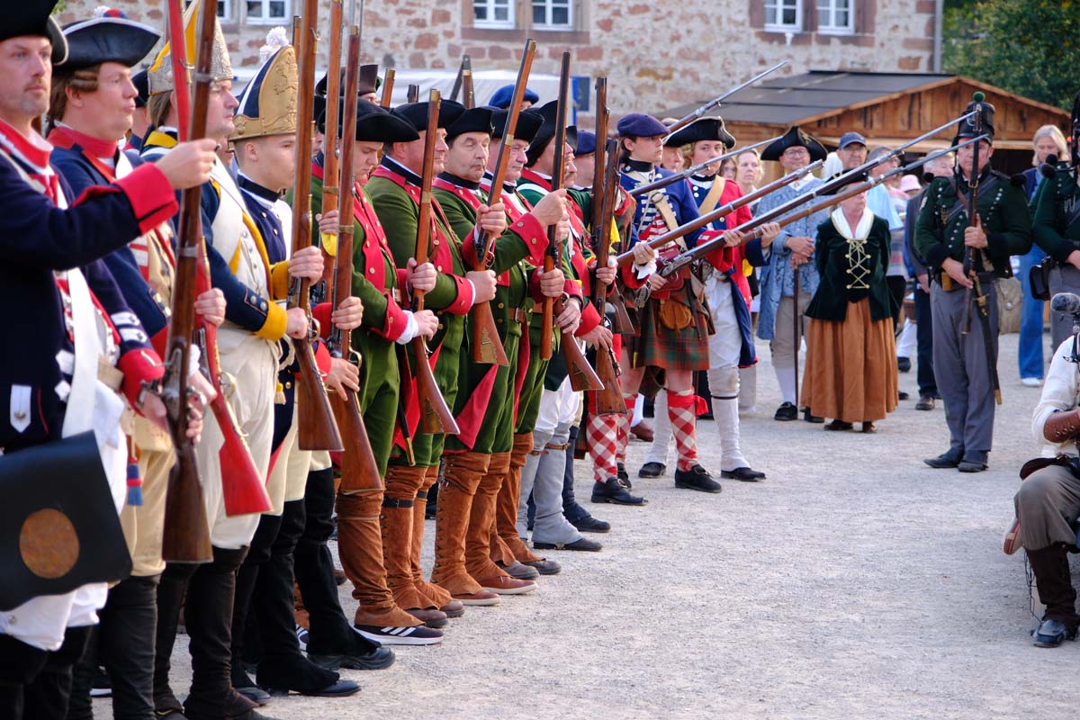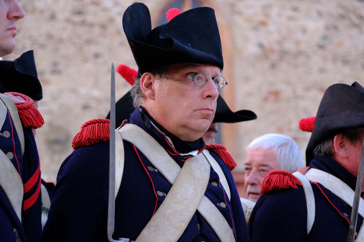 Zwischen Konfirmation und Viele Besucher sind festlich oder bäuerlich gewandet und treffen überall auf Soldaten unterschiedlicher Länder Zeiten. Immer wieder tauchen die Fahnen-Schwenker, Trommler und Fanfarenbläser aus Bretten auf, marschieren Uniformierte durch die Stadt. Die Schwertfechter Nordhessen zeigen genauso ihr Können wie die Bürgergarde aus Neustadt. Nichts für schwache Nerven sind die Lazarettvorführungen, in denen Amputationen und Behandlungen aus der Zeit der großen Schlachten mit tausenden Verletzten geschildert werden.