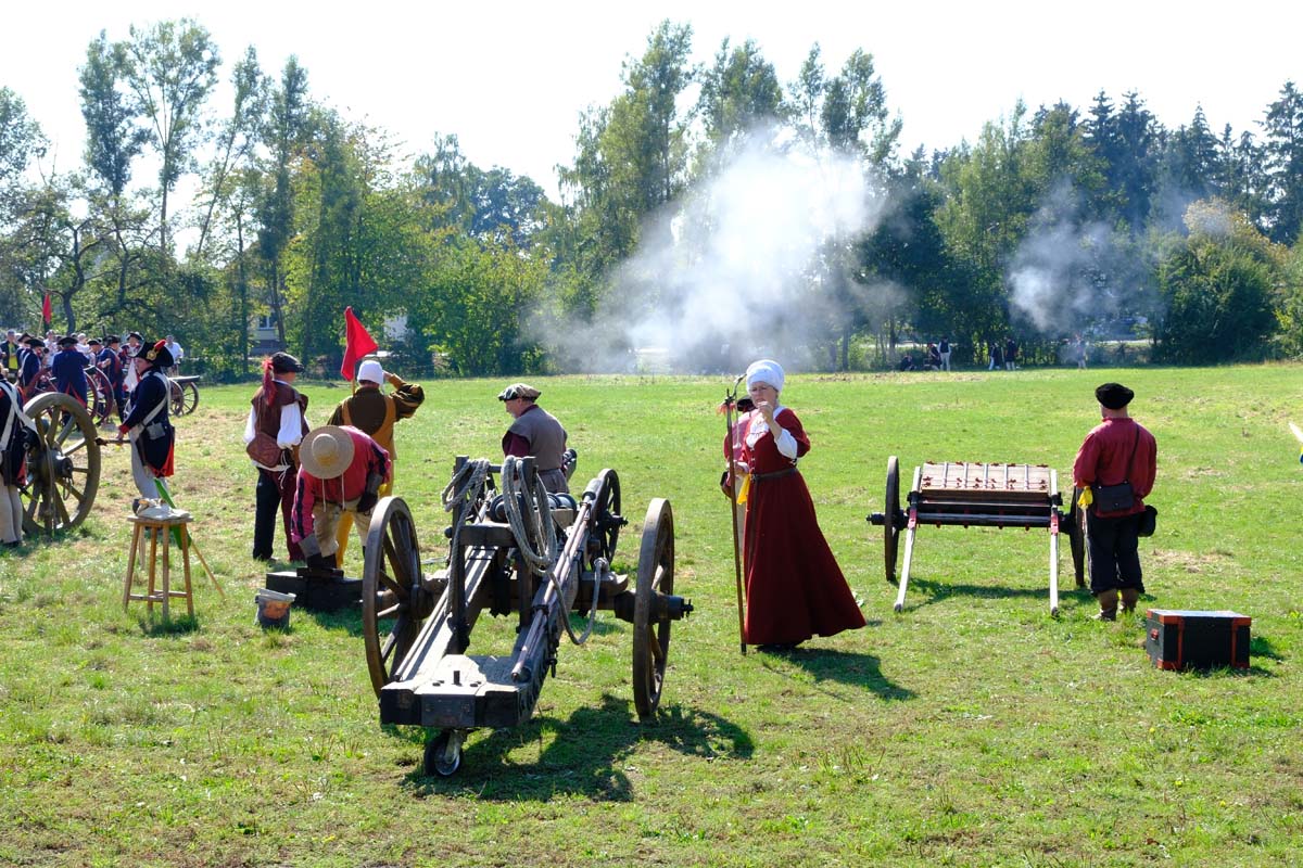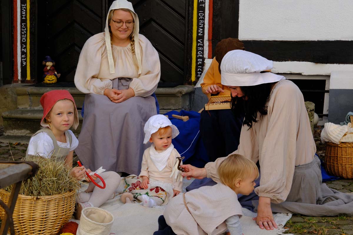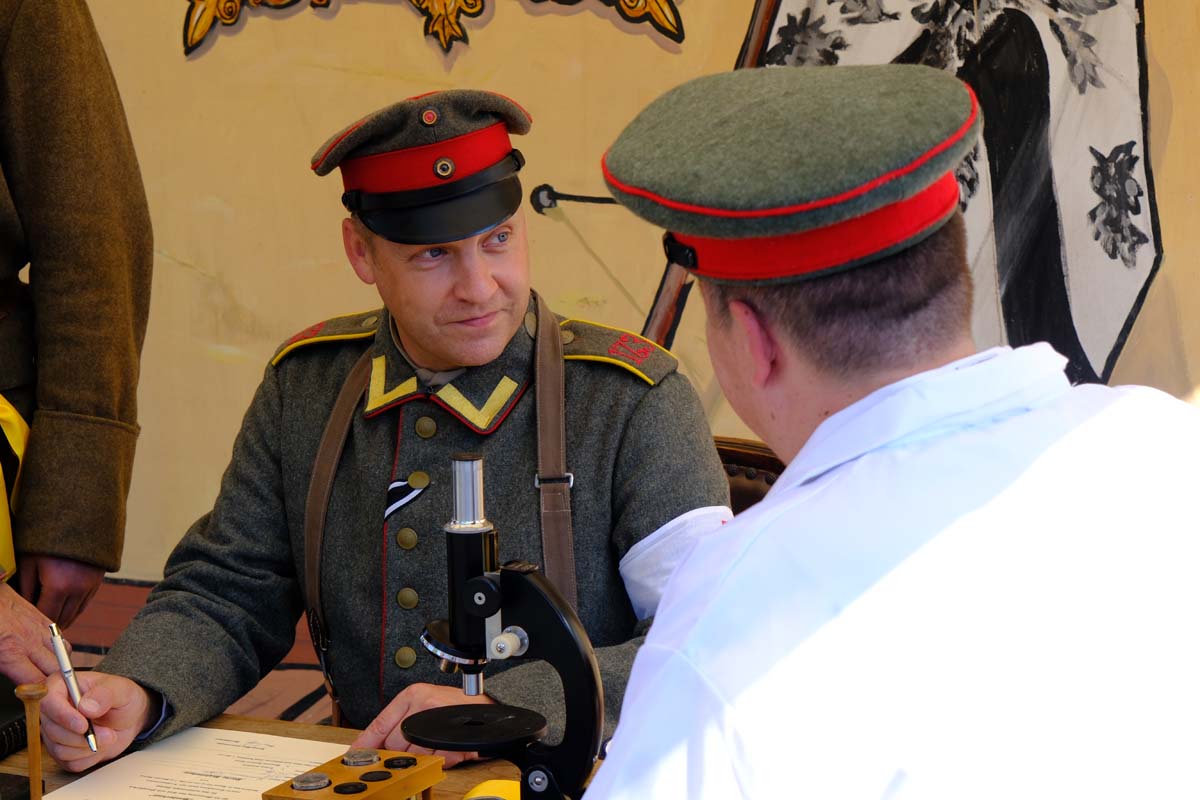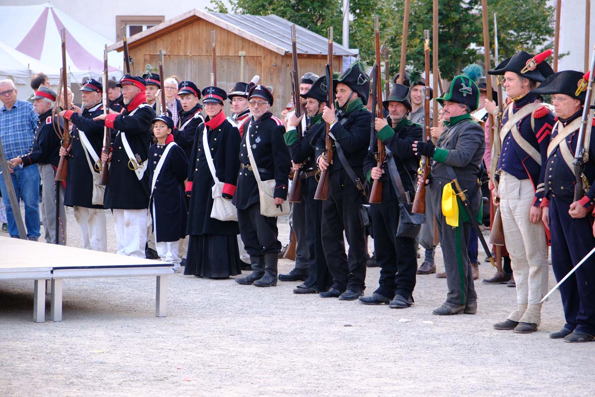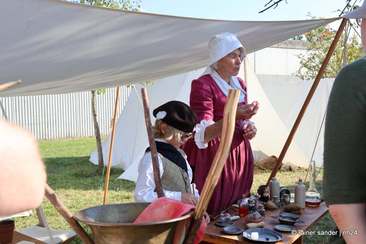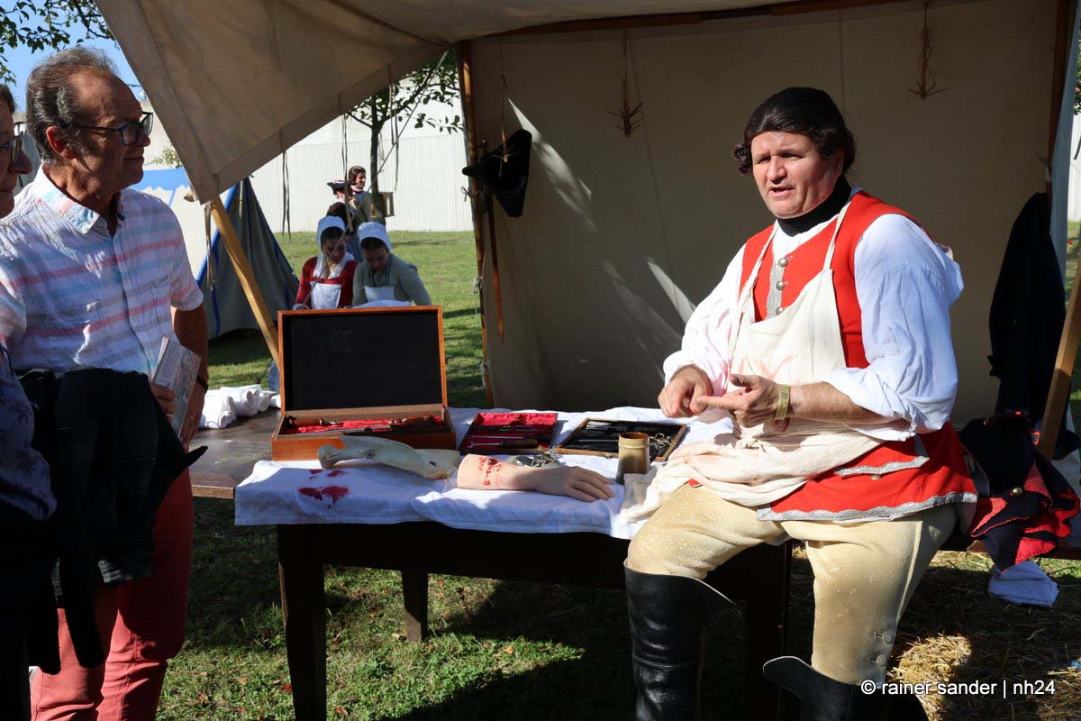 Zwischen Konfirmation und Viele Besucher sind festlich oder bäuerlich gewandet und treffen überall auf Soldaten unterschiedlicher Länder Zeiten. Immer wieder tauchen die Fahnen-Schwenker, Trommler und Fanfarenbläser aus Bretten auf, marschieren Uniformierte durch die Stadt. Die Schwertfechter Nordhessen zeigen genauso ihr Können wie die Bürgergarde aus Neustadt. Nichts für schwache Nerven sind die Lazarettvorführungen, in denen Amputationen und Behandlungen aus der Zeit der großen Schlachten mit tausenden Verletzten geschildert werden.