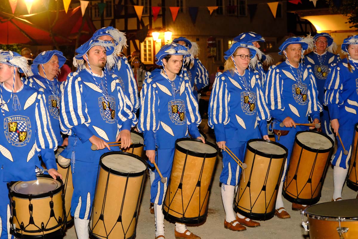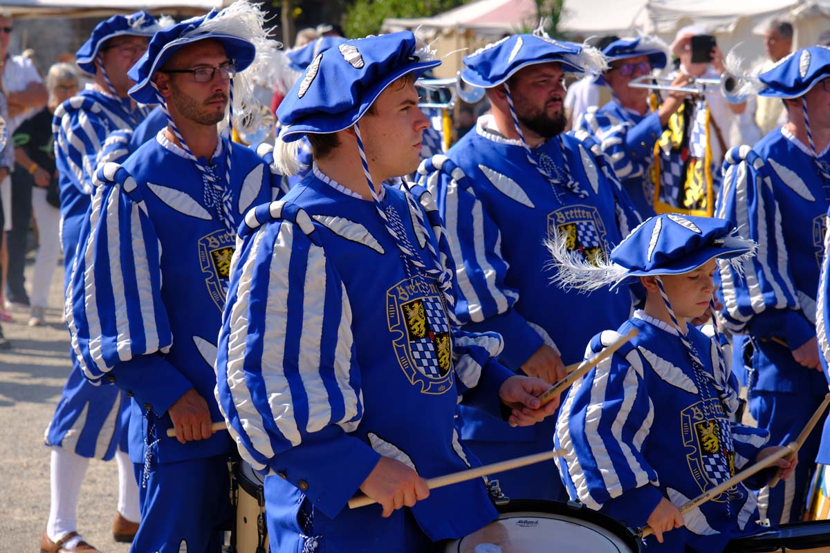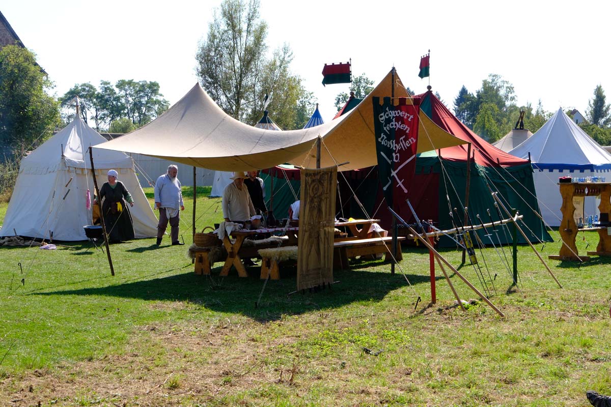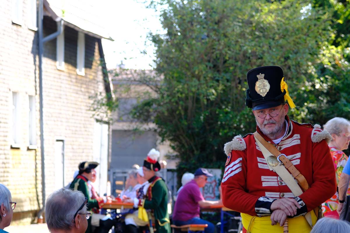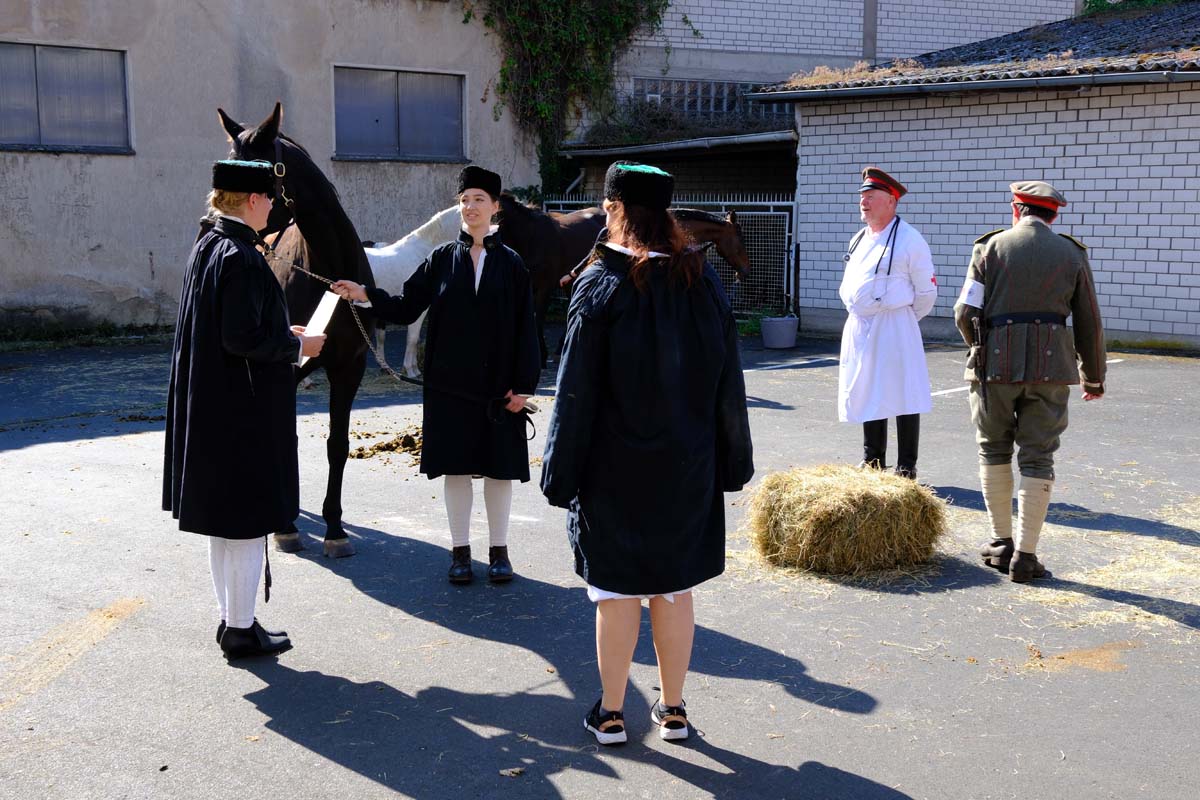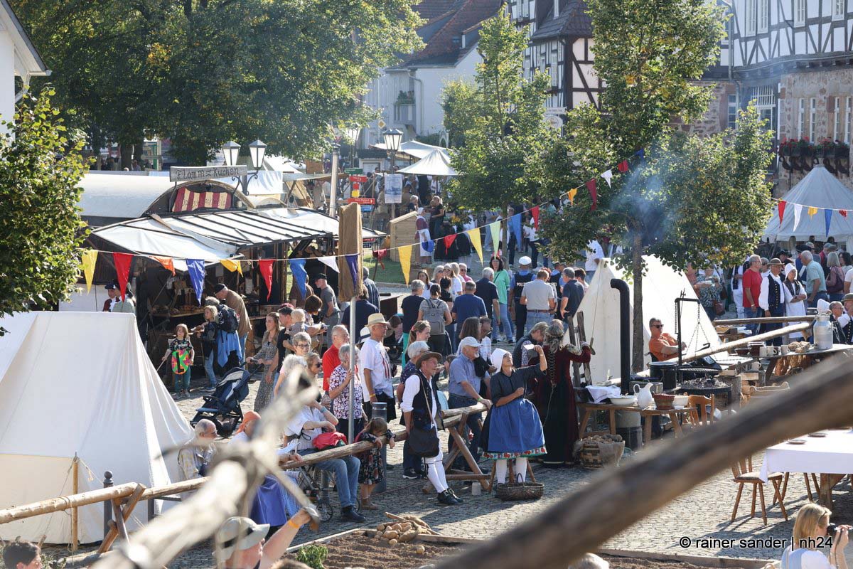 Zwischen Konfirmation und Viele Besucher sind festlich oder bäuerlich gewandet und treffen überall auf Soldaten unterschiedlicher Länder Zeiten. Immer wieder tauchen die Fahnen-Schwenker, Trommler und Fanfarenbläser aus Bretten auf, marschieren Uniformierte durch die Stadt. Die Schwertfechter Nordhessen zeigen genauso ihr Können wie die Bürgergarde aus Neustadt. Nichts für schwache Nerven sind die Lazarettvorführungen, in denen Amputationen und Behandlungen aus der Zeit der großen Schlachten mit tausenden Verletzten geschildert werden.