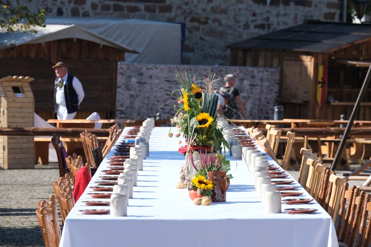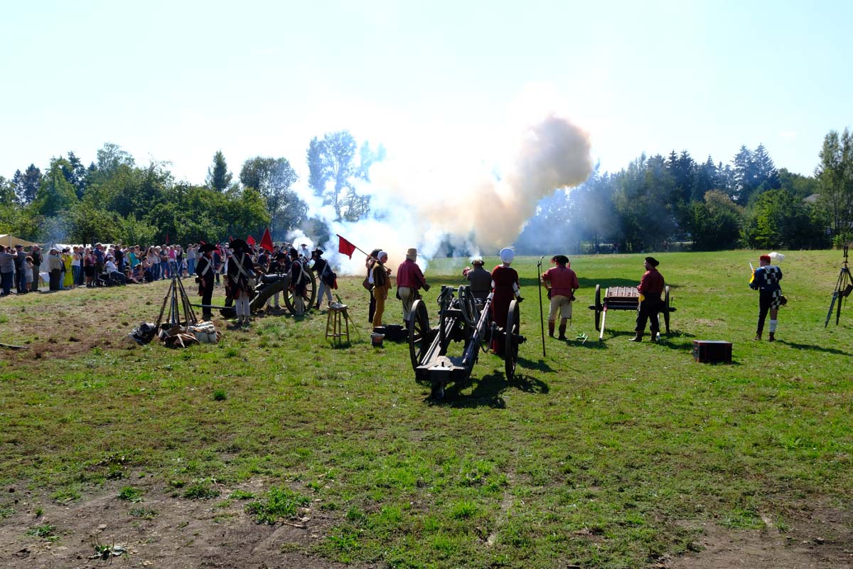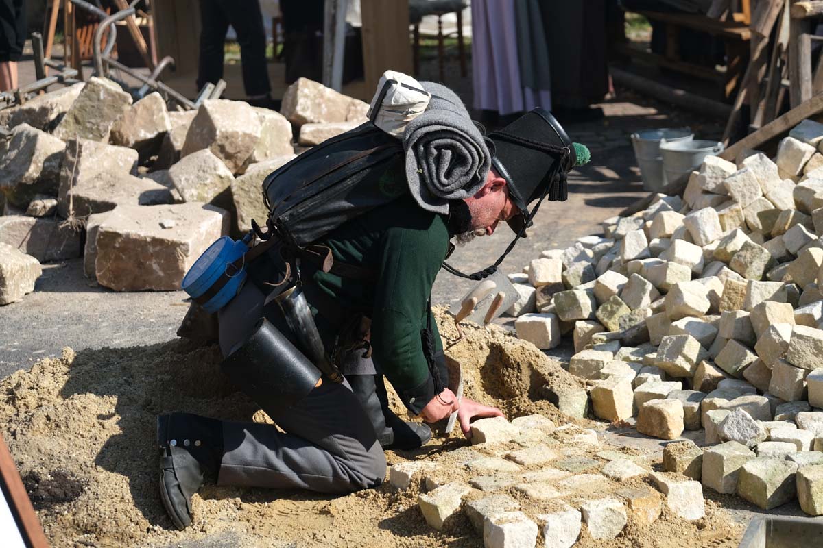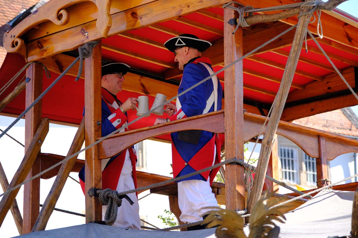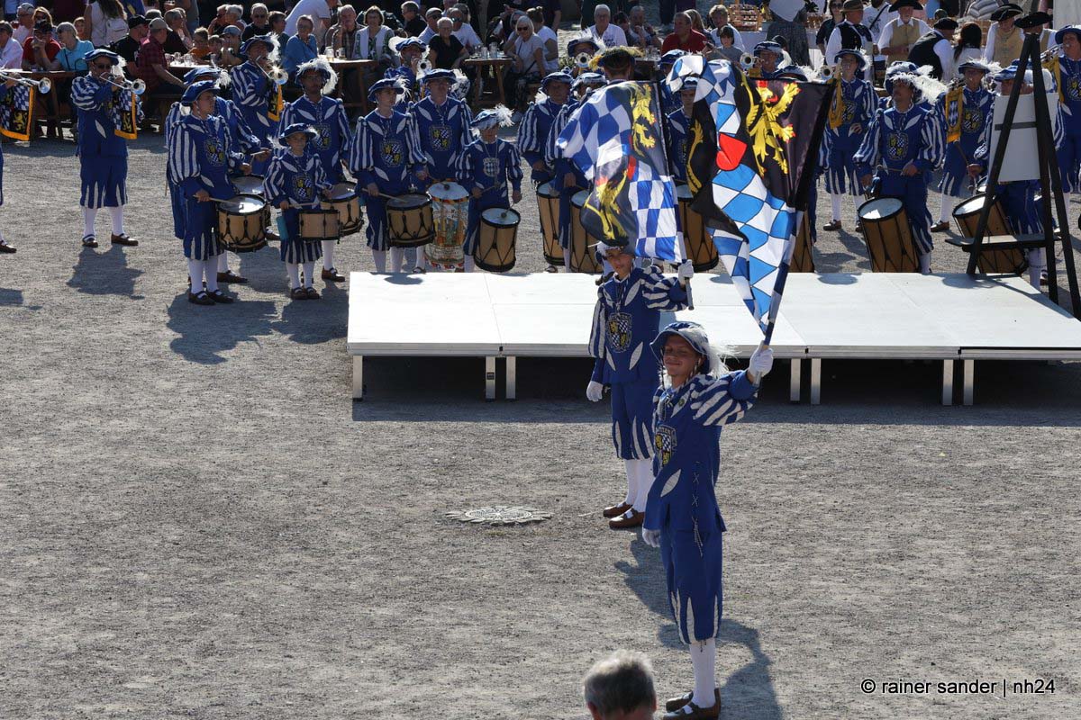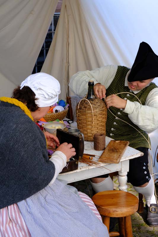 Jedenfalls nicht mit 1.100 Akteuren in Uniform, als Handwerker oder Händler, als Künstler oder Darsteller, als Musiker oder Geschichtenerzähler. Nahezu im gesamten Festungsbereich sind Stände aufgebaut, werden historische Szenen nachgespielt, Schlachten geschlagen, im Dekanatshof immer wieder die Konfirmation begründet, im alten Pferdestall zweimal getafelt oder an der riesigen Tafel auf dem Paradeplatz immer wieder von Landgraf Karl die Kartoffel angeboten und diesmal von den Bauern nicht der Salat vorgezogen.