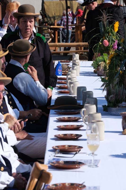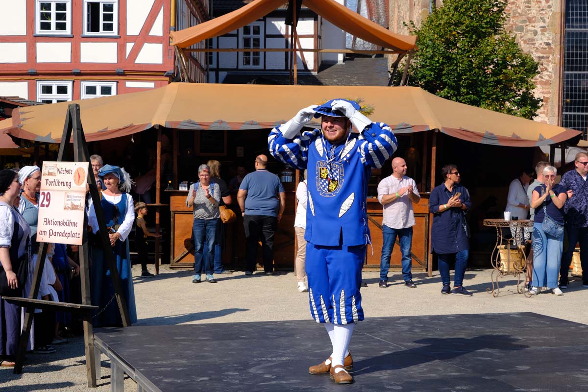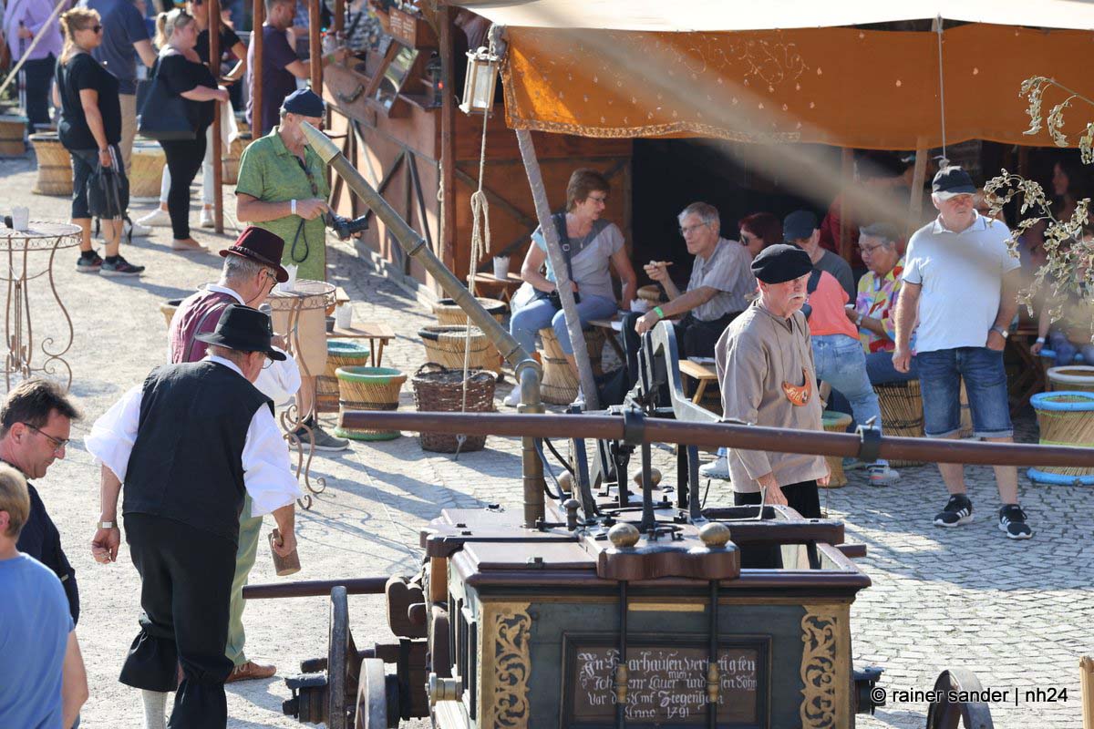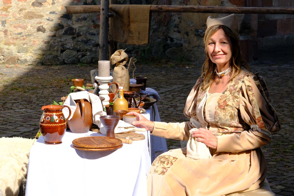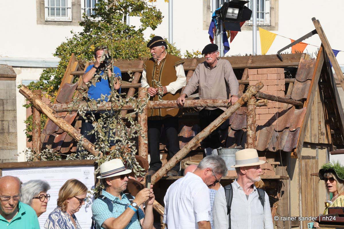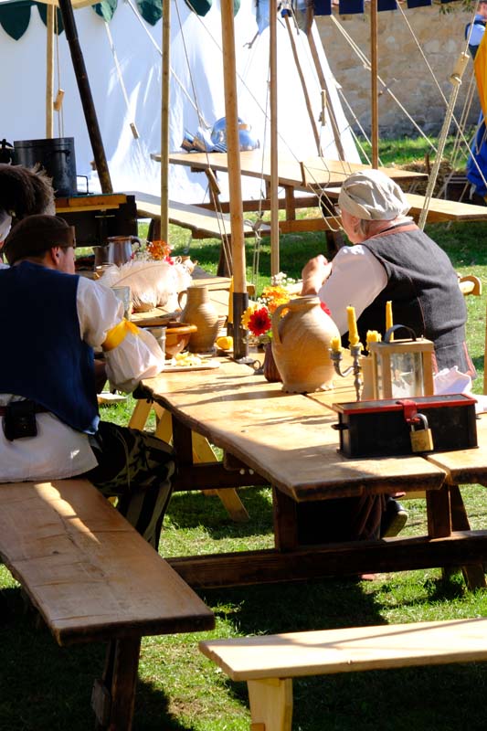 Jedenfalls nicht mit 1.100 Akteuren in Uniform, als Handwerker oder Händler, als Künstler oder Darsteller, als Musiker oder Geschichtenerzähler. Nahezu im gesamten Festungsbereich sind Stände aufgebaut, werden historische Szenen nachgespielt, Schlachten geschlagen, im Dekanatshof immer wieder die Konfirmation begründet, im alten Pferdestall zweimal getafelt oder an der riesigen Tafel auf dem Paradeplatz immer wieder von Landgraf Karl die Kartoffel angeboten und diesmal von den Bauern nicht der Salat vorgezogen.