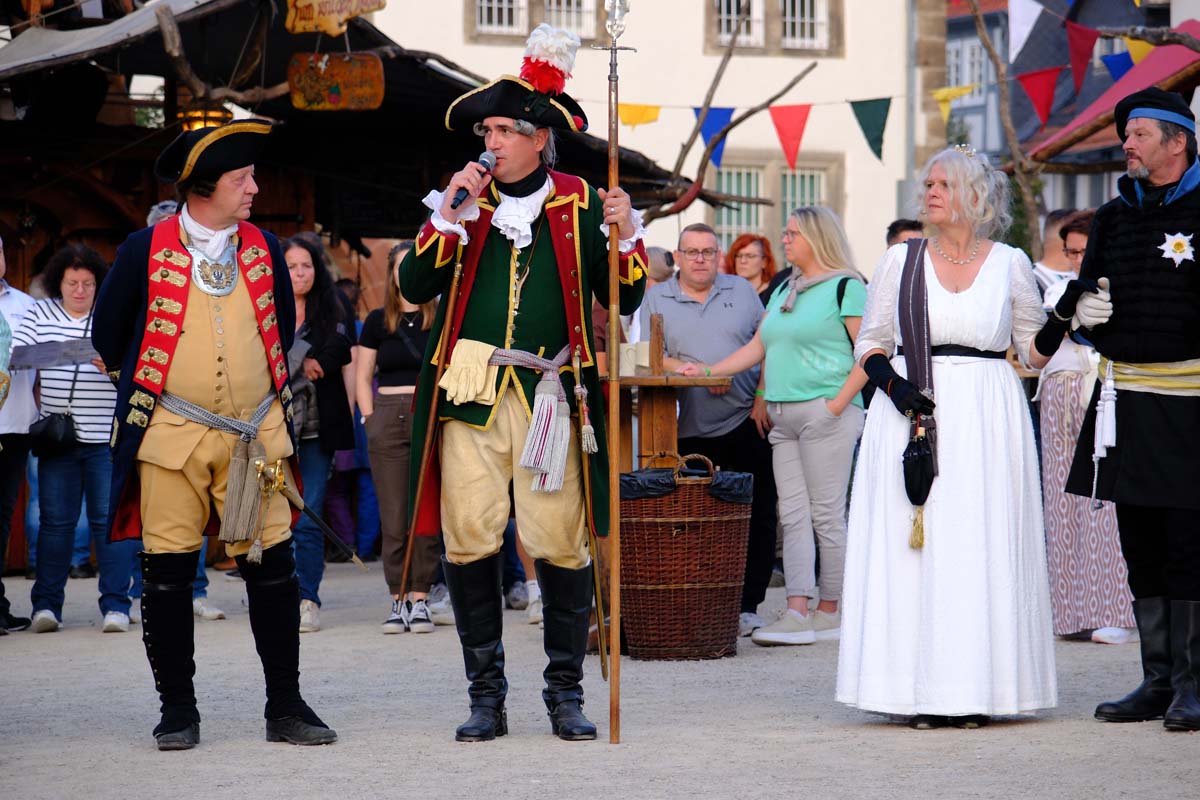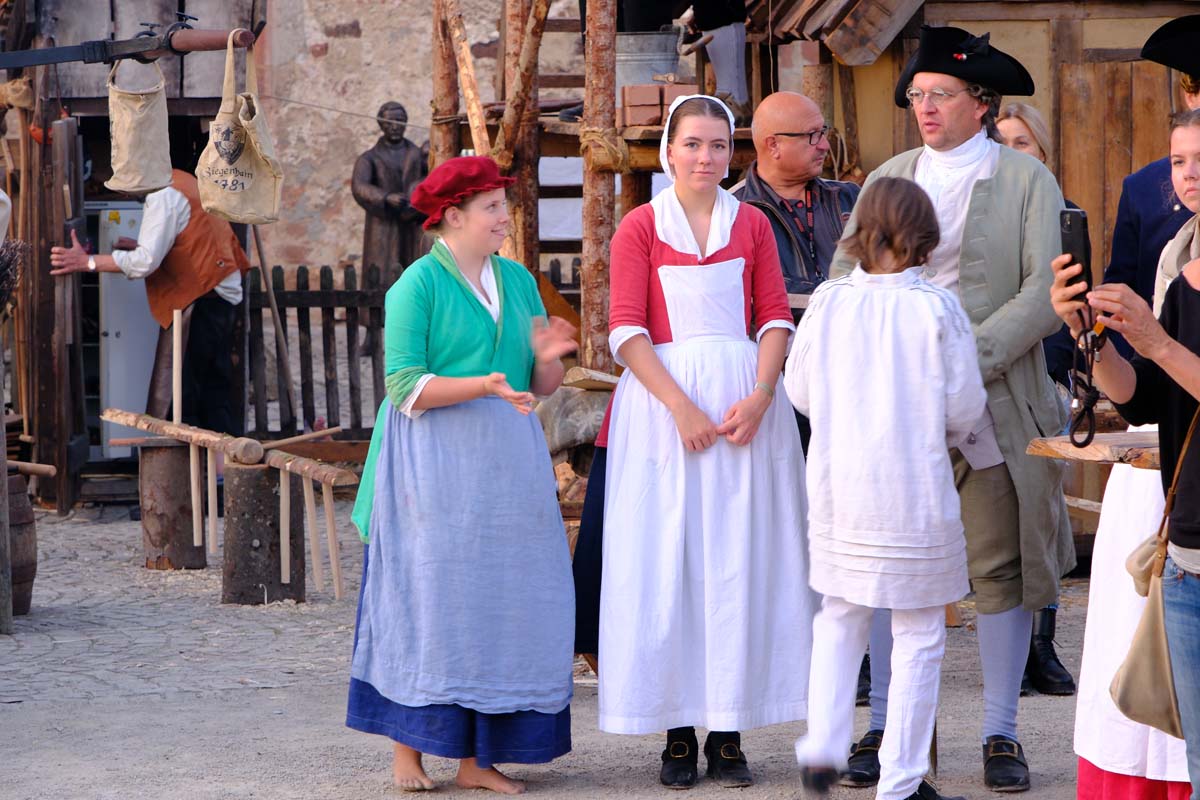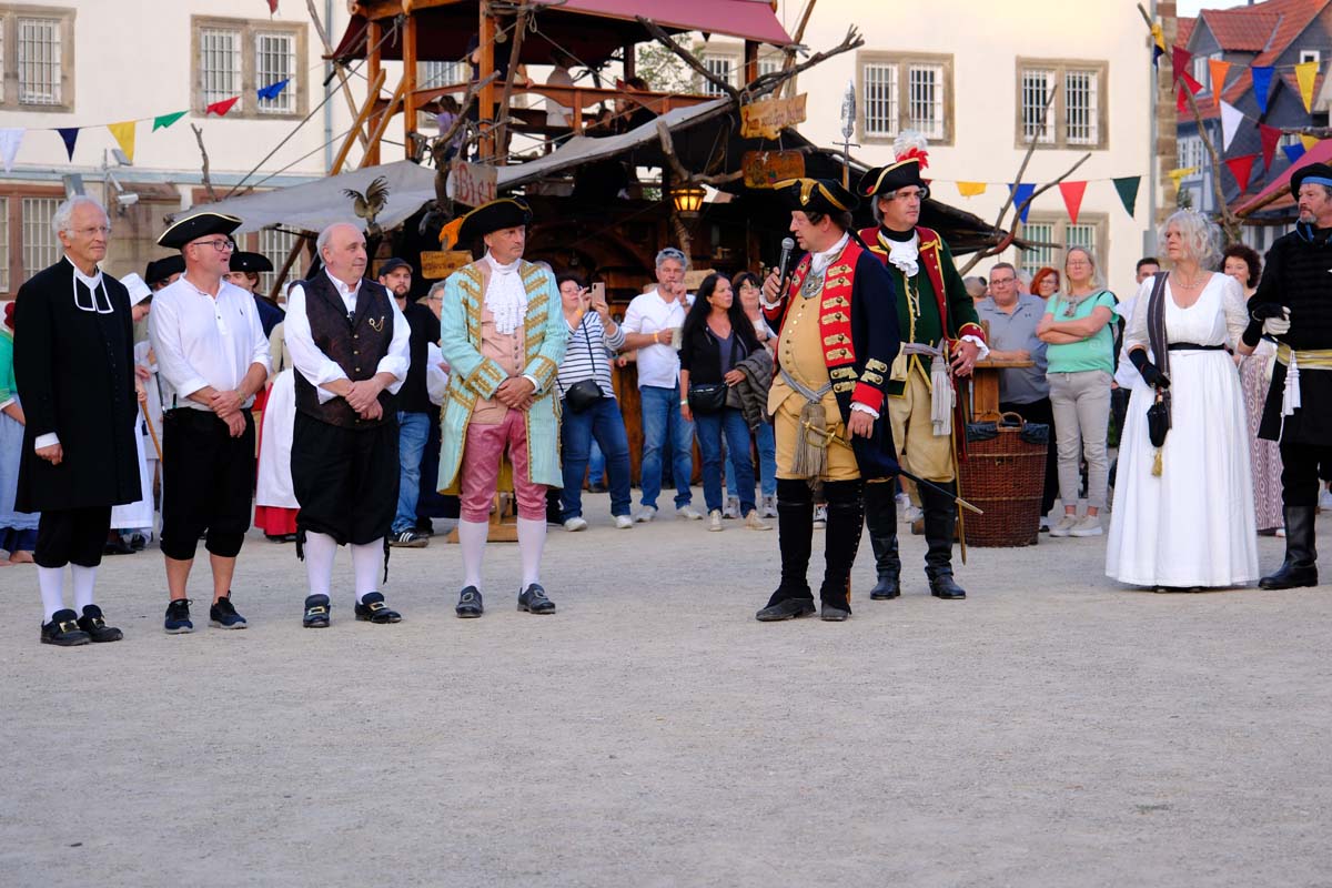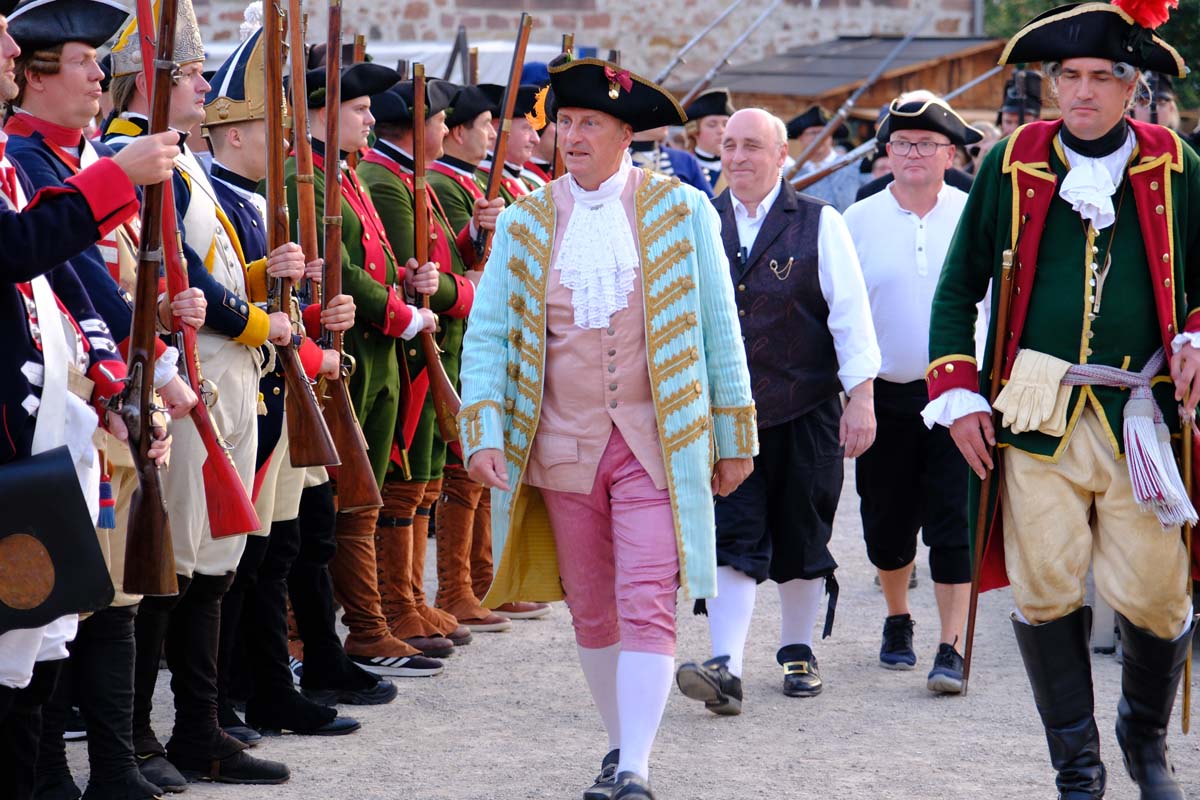 In den Gassen der Festung werden Kriegspferde gemustert und zwischendurch Soldaten für den Kampf gegen George Washington Amerika angeworben. Baden singen Geschichten aus der Geschichte und zahlreicheren Reenactment-Gruppen präsentieren Geschichte zum Anfassen. Da wird auf dem Marktplatz Feuer gelöscht mit einer alten Handpumpe, Straßen gepflastert und Häuser aus Lehm und Fachwerk gebaut. Dekan Christian Wachter, Vorsitzender des Vereins, taucht, wie die anderen Vorstandsmitglieder gefühlt an jedem Ort im Festbereich immer wieder auf und ist als heutiger Vertreter der Reformation allgegenwärtig präsent. Genauso wie die alten Helden der Festung, Velten Muhly und Heinz von Lüder.