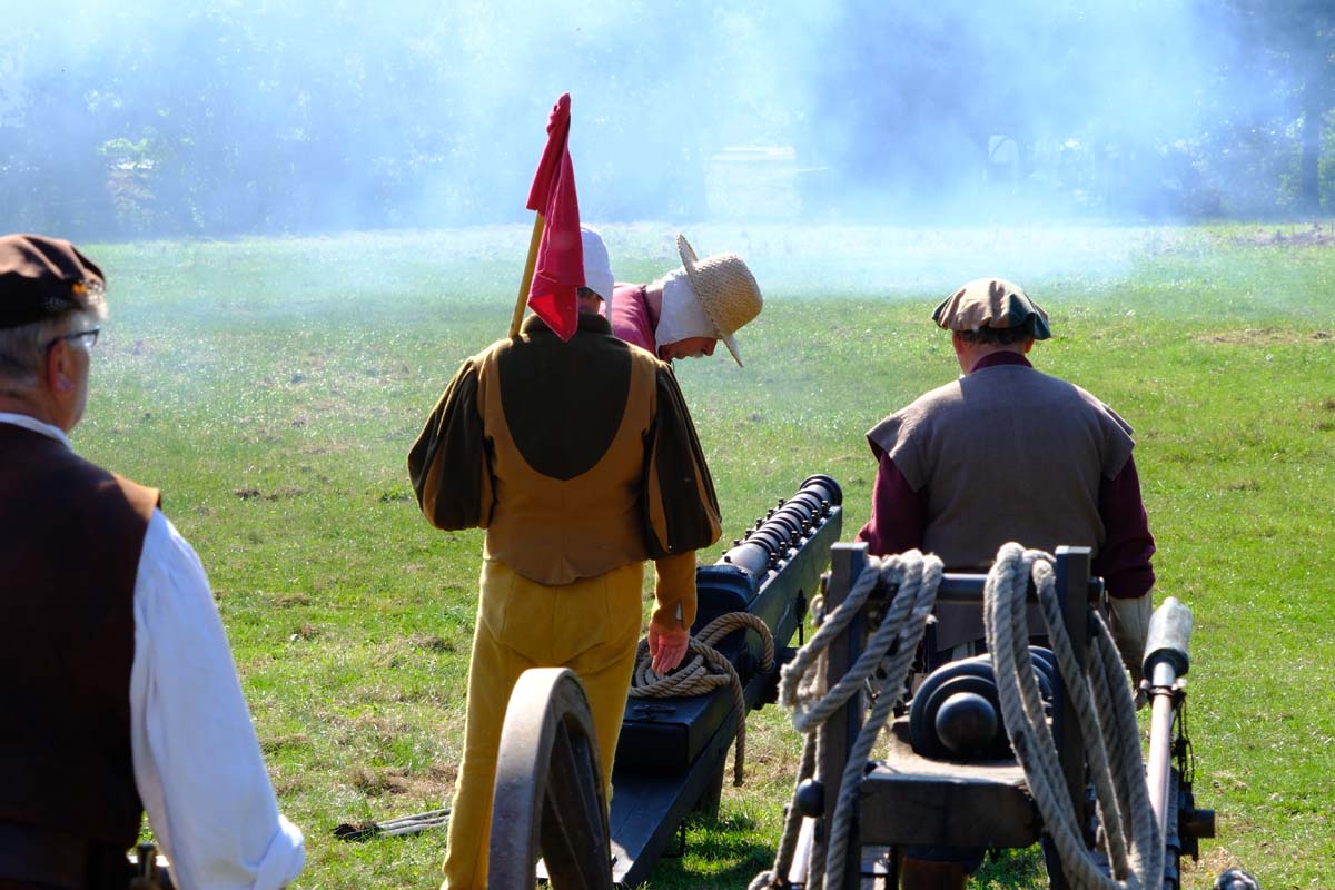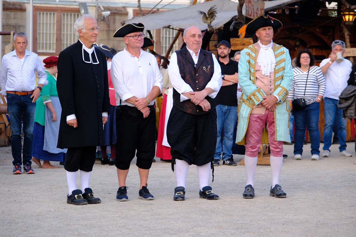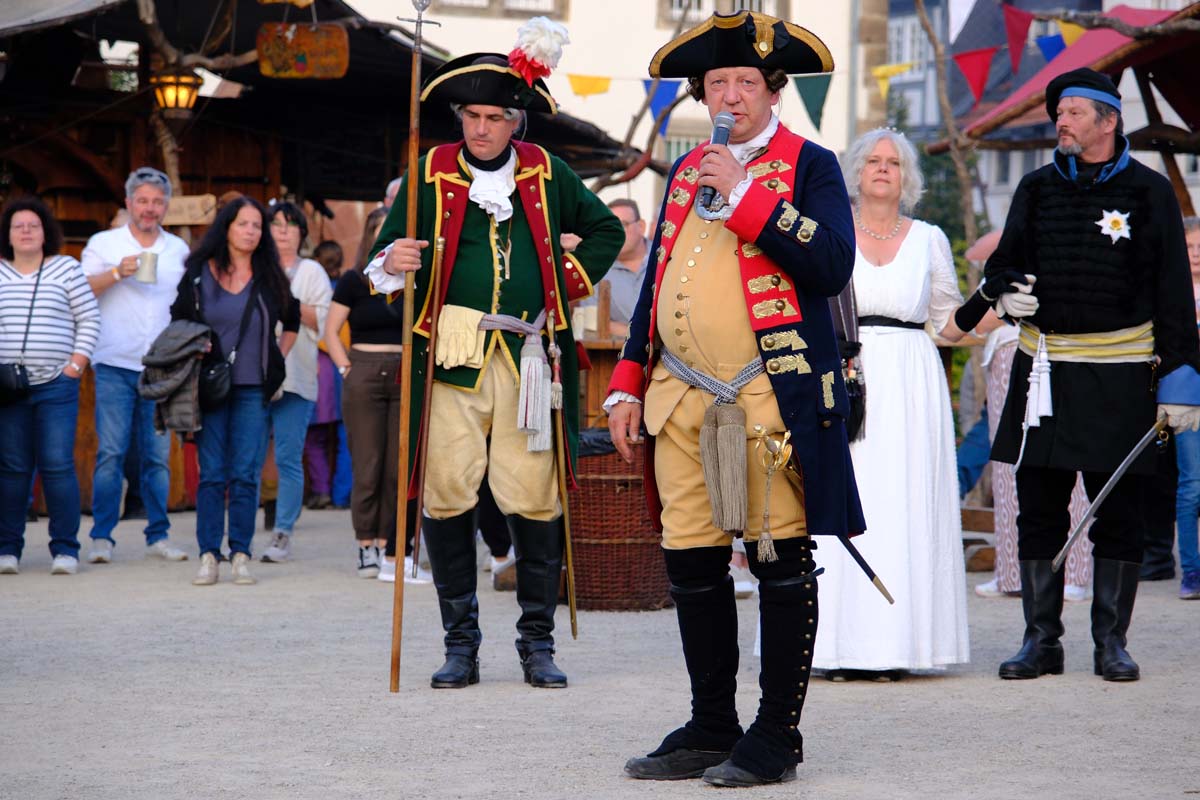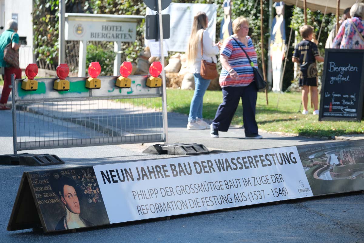 In den Gassen der Festung werden Kriegspferde gemustert und zwischendurch Soldaten für den Kampf gegen George Washington Amerika angeworben. Baden singen Geschichten aus der Geschichte und zahlreicheren Reenactment-Gruppen präsentieren Geschichte zum Anfassen. Da wird auf dem Marktplatz Feuer gelöscht mit einer alten Handpumpe, Straßen gepflastert und Häuser aus Lehm und Fachwerk gebaut. Dekan Christian Wachter, Vorsitzender des Vereins, taucht, wie die anderen Vorstandsmitglieder gefühlt an jedem Ort im Festbereich immer wieder auf und ist als heutiger Vertreter der Reformation allgegenwärtig präsent. Genauso wie die alten Helden der Festung, Velten Muhly und Heinz von Lüder.