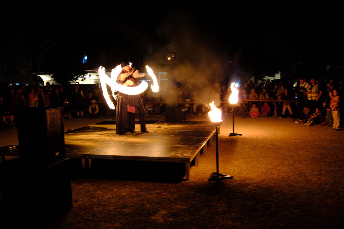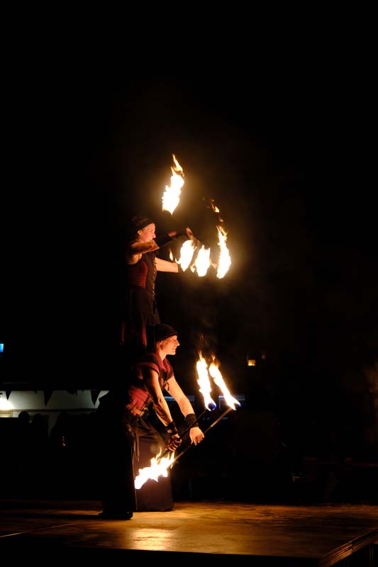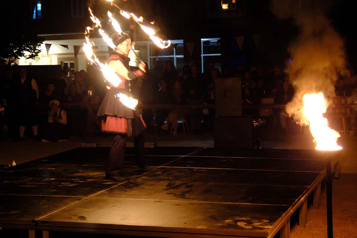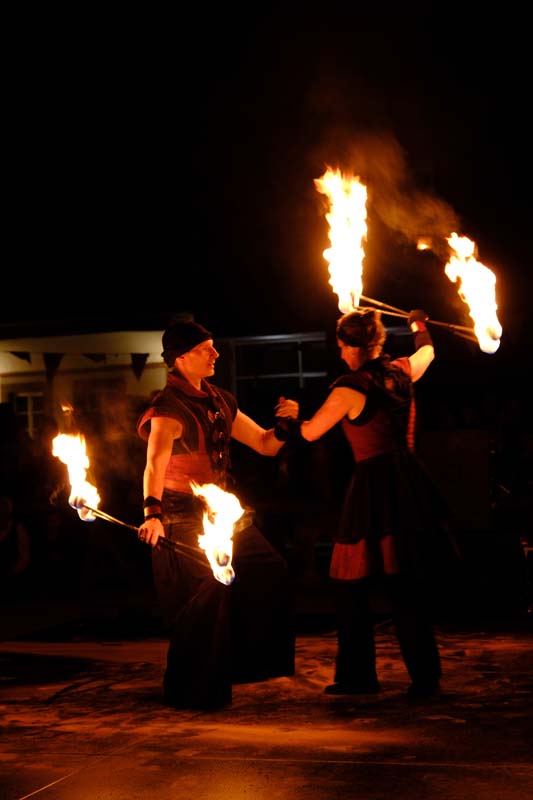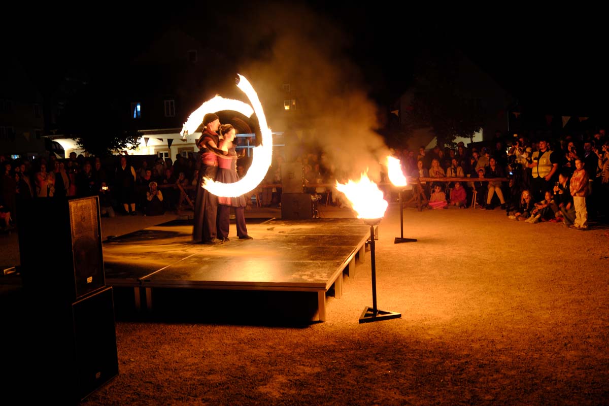 Gestern gab es zum Abschluss die Feuershow mit Spiral Fire. Mic Bosold und Iris Knipper entführten die Besucher in eine Zauberwelt aus Feuer, Musik und Tanz. Heute sind die Akteure noch einmal für einen Besucheransturm bereit. Höhepunkt ist sicher der Angriff auf die Festung um 16:00 Uhr mit einer großen Anzahl von Akteuren in Uniform und ihren historischen Waffen. (rs)