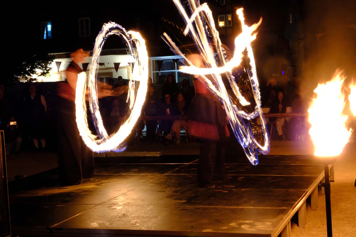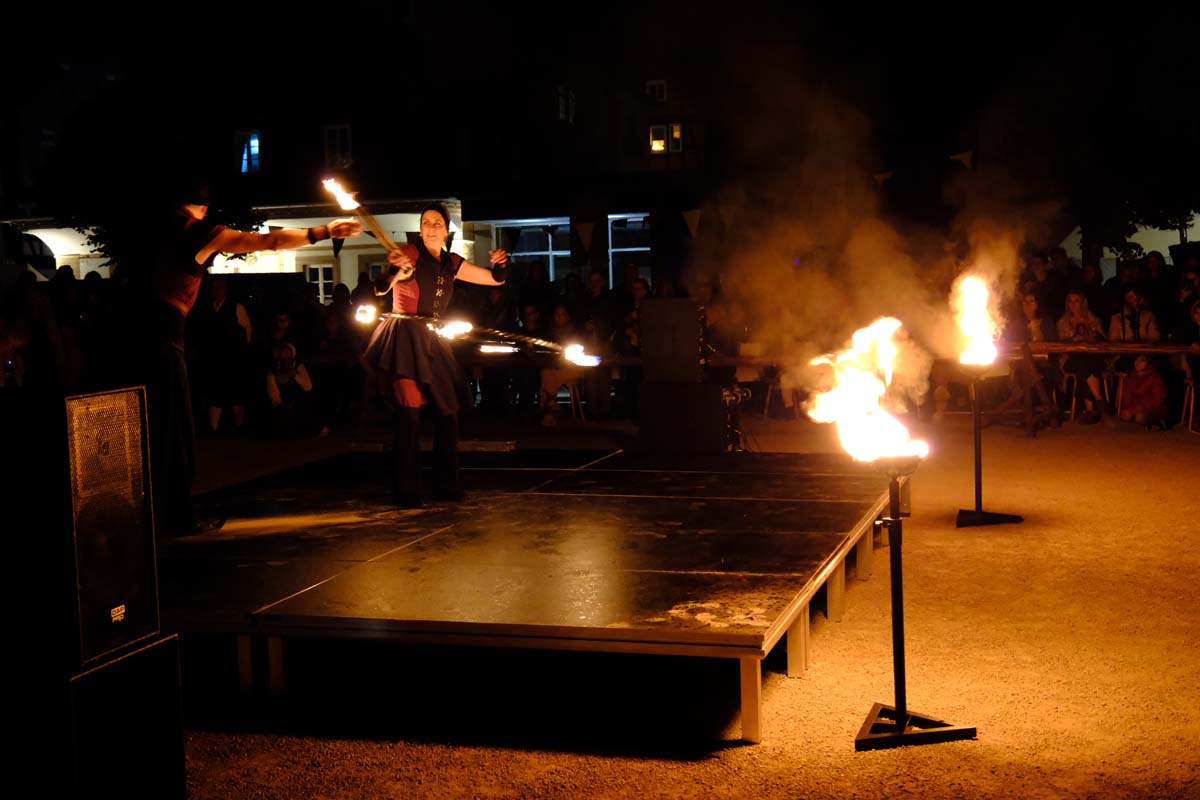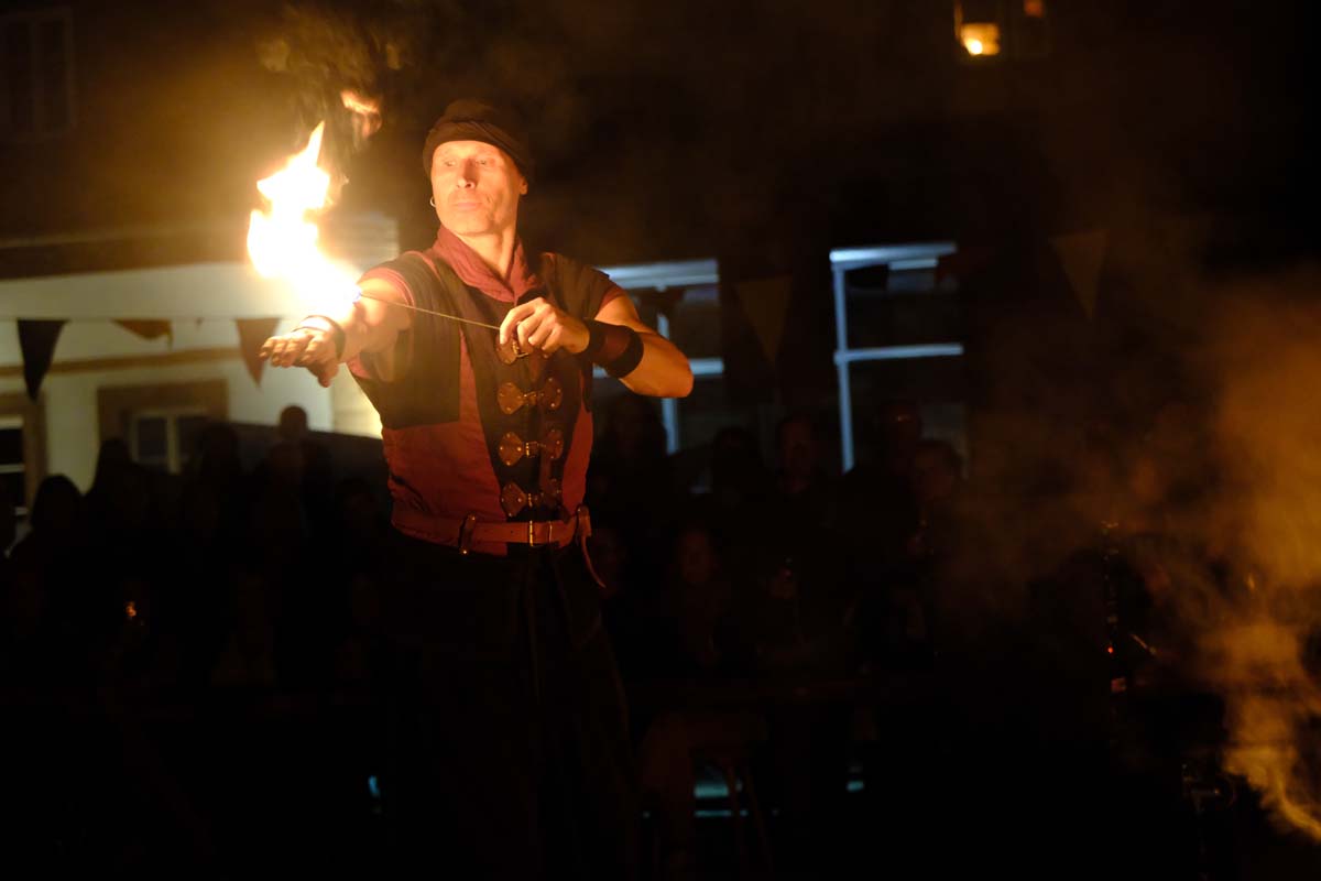 Gestern gab es zum Abschluss die Feuershow mit Spiral Fire. Mic Bosold und Iris Knipper entführten die Besucher in eine Zauberwelt aus Feuer, Musik und Tanz. Heute sind die Akteure noch einmal für einen Besucheransturm bereit. Höhepunkt ist sicher der Angriff auf die Festung um 16:00 Uhr mit einer großen Anzahl von Akteuren in Uniform und ihren historischen Waffen. (rs)