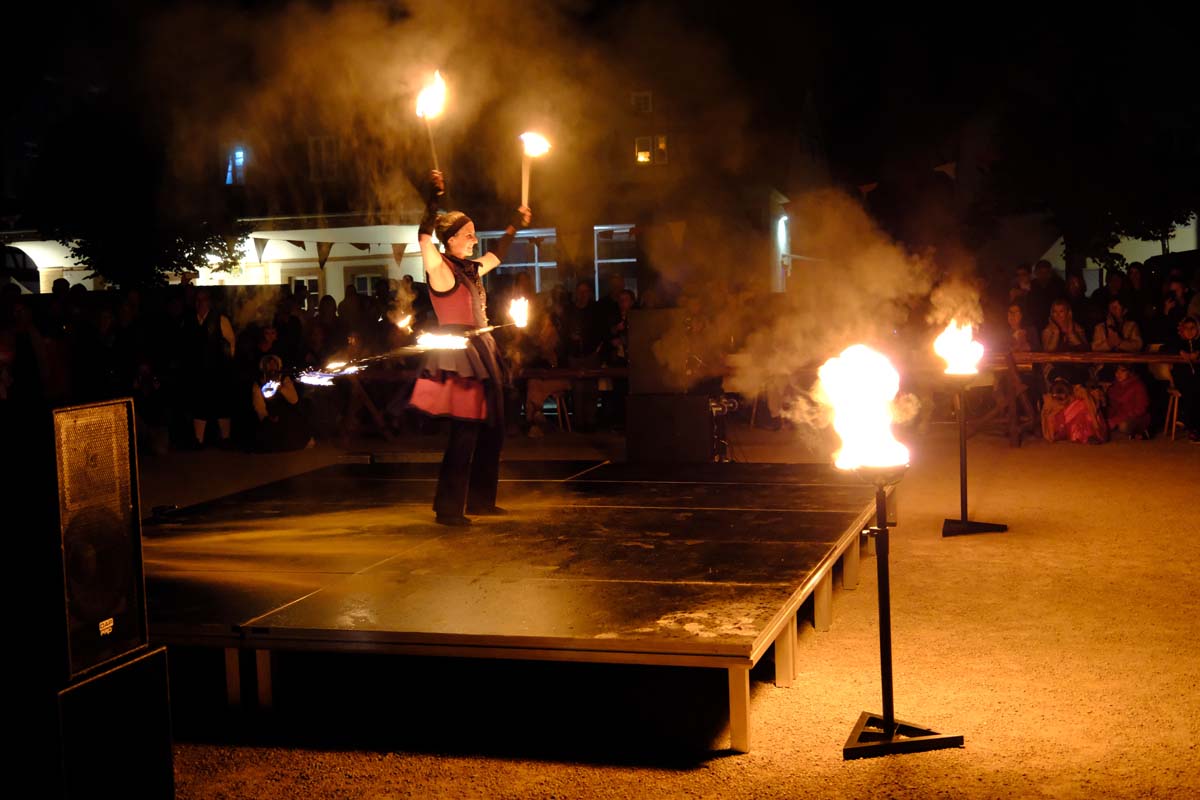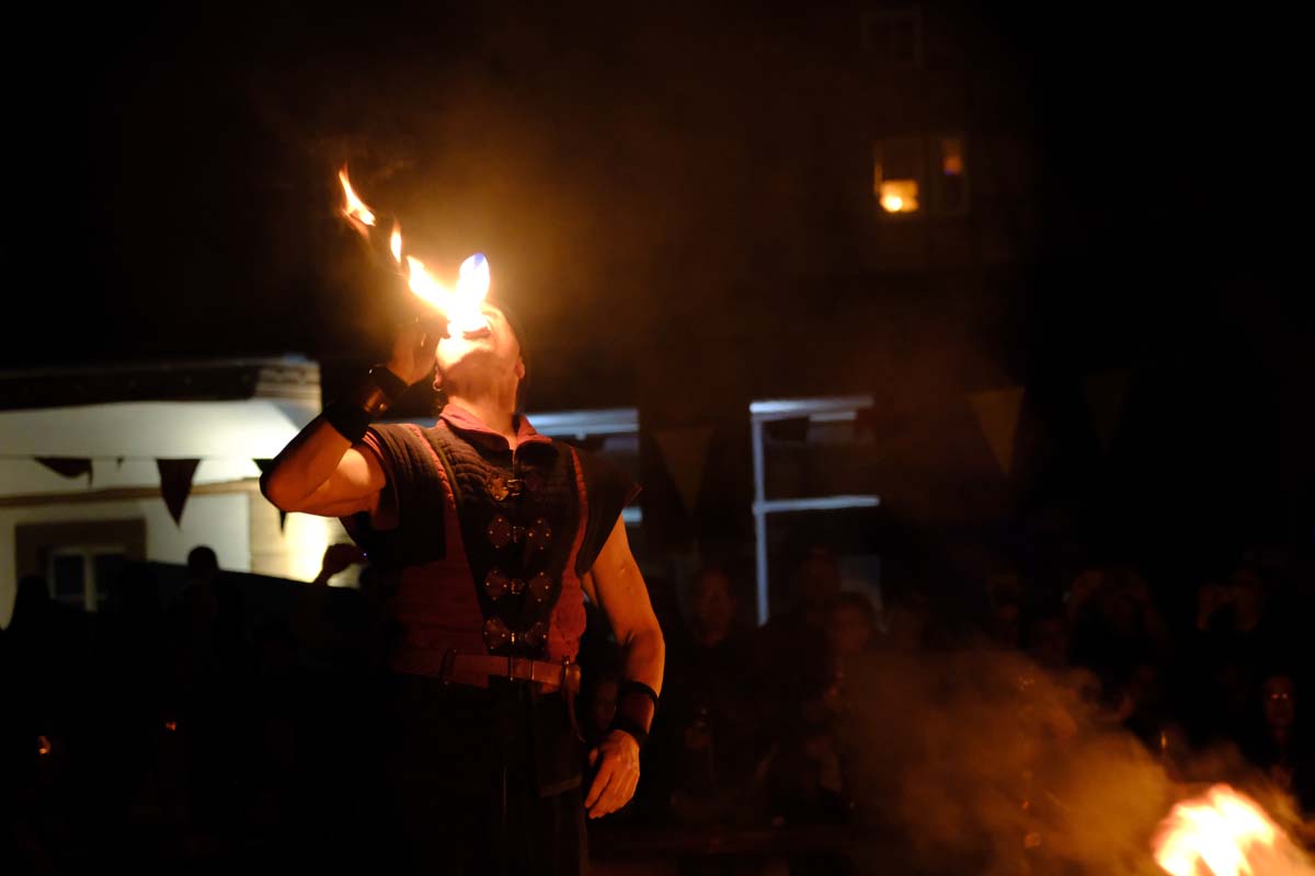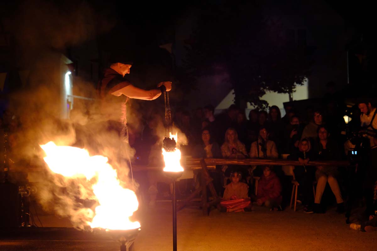 Feuershow zum Abschied – heute wird die Festung angegriffen