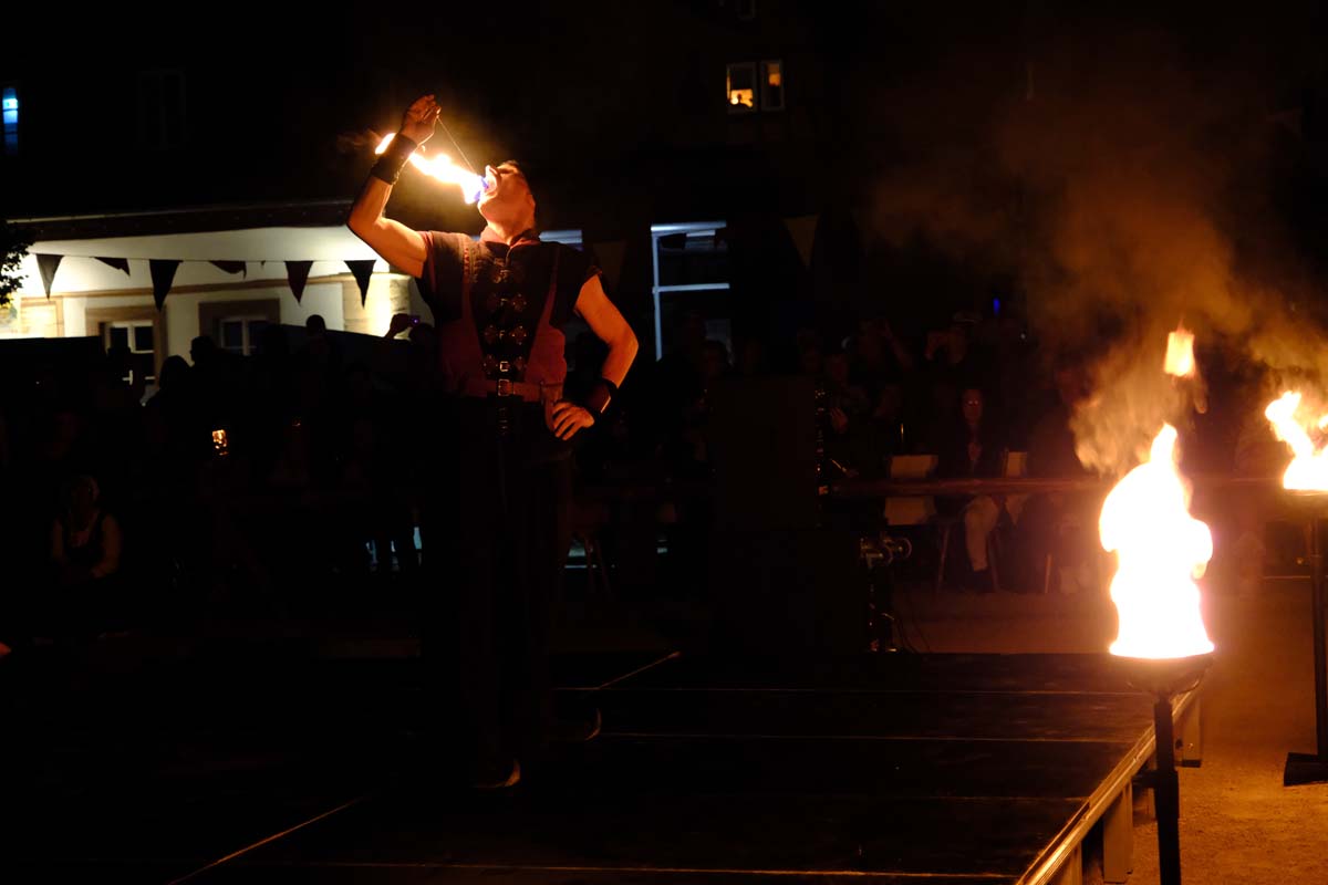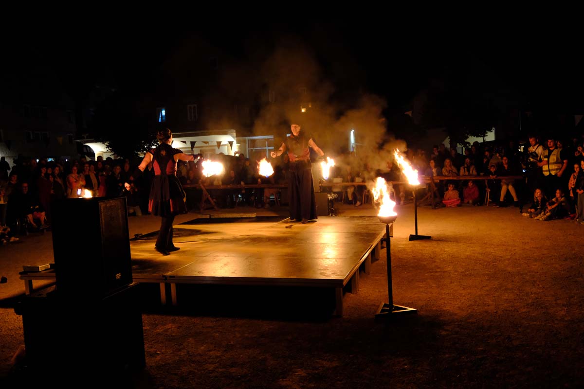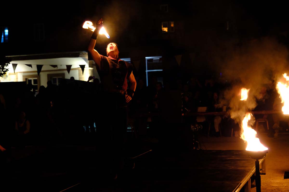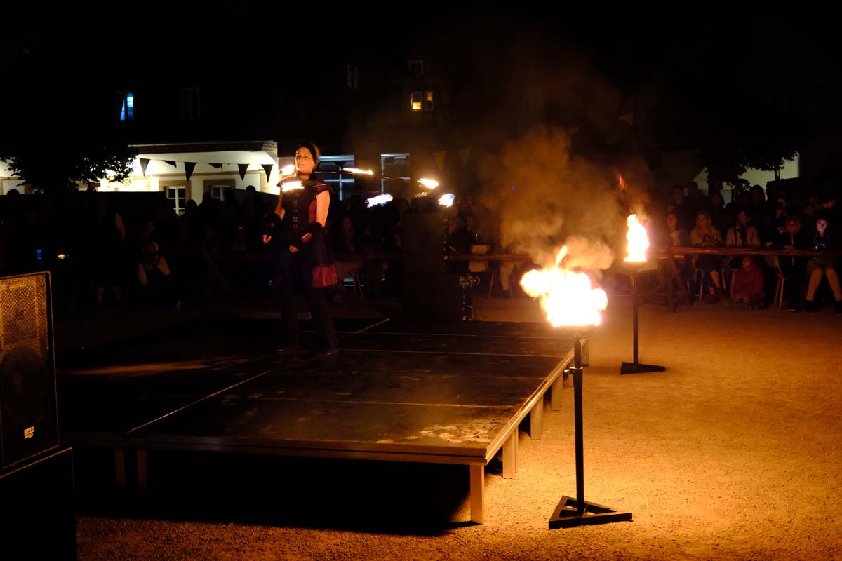 Feuershow zum Abschied – heute wird die Festung angegriffen