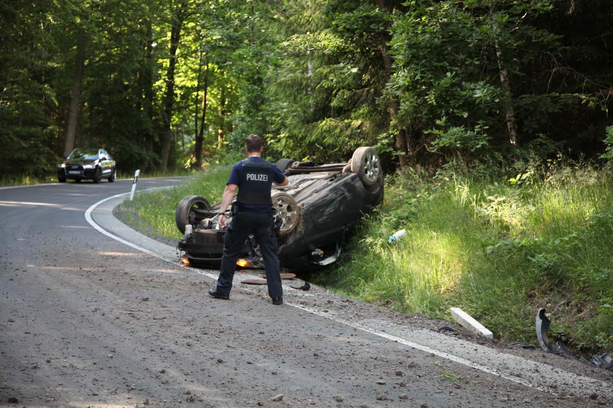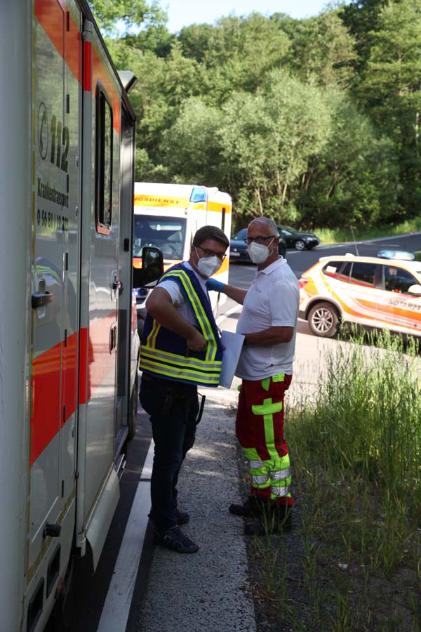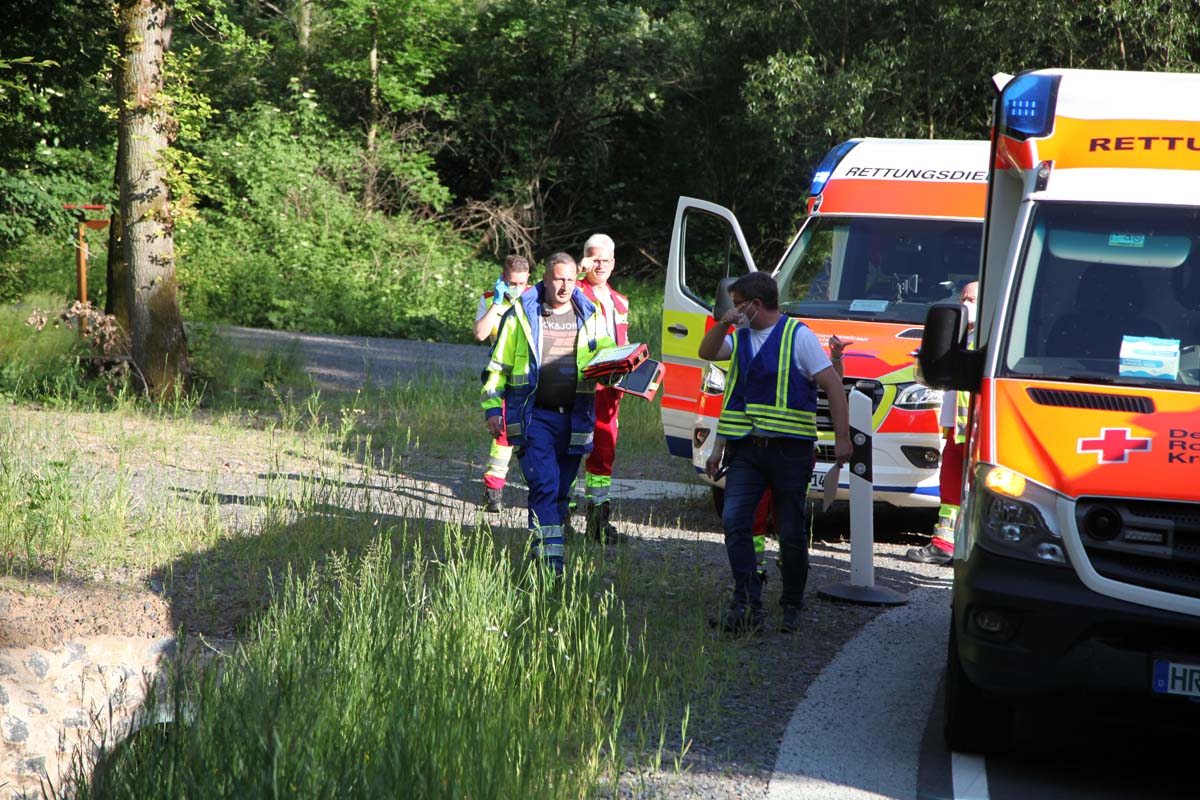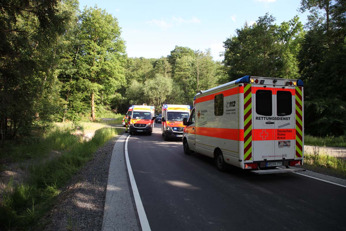 Zunächst verletzte sich gegen 14 Uhr ein 43 Jahre alter Motorradfahrer auf der Kreisstraße zwischen der Bundesstraße 3 und Sebbeterode schwer, als er wahrscheinlich aus Unachtsamkeit im Kurvenbereich ohne Beteiligung eines weiteren Verkehrsteilnehmers stürzte. Der ansprechbare Bad Wildunger wurde von der Crew eines Rettungshubschraubers nach seiner Erstversorgung an der Unfallstelle in eine Klinik geflogen.