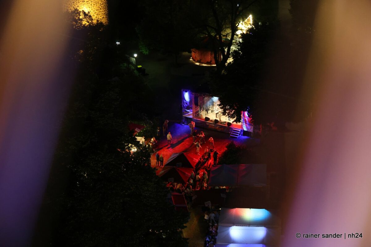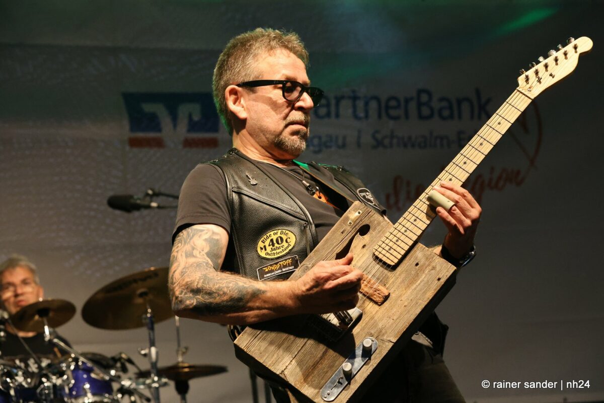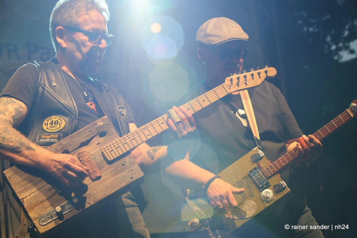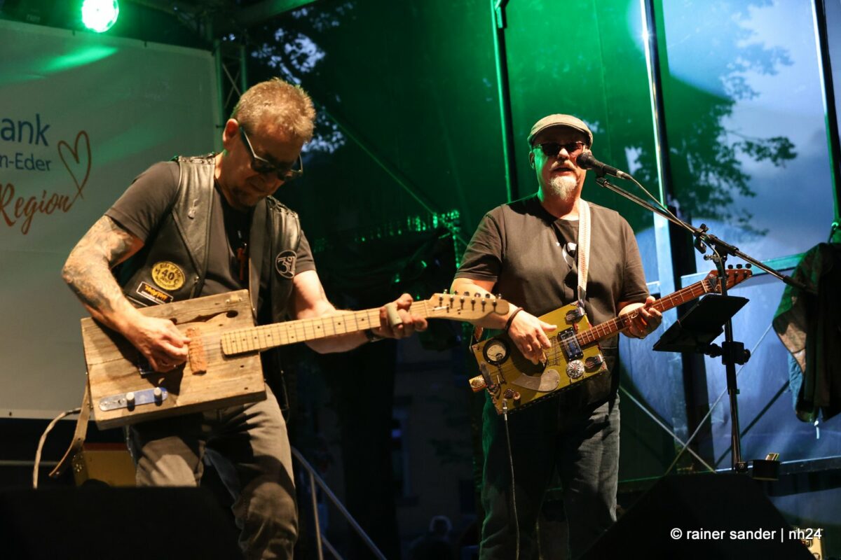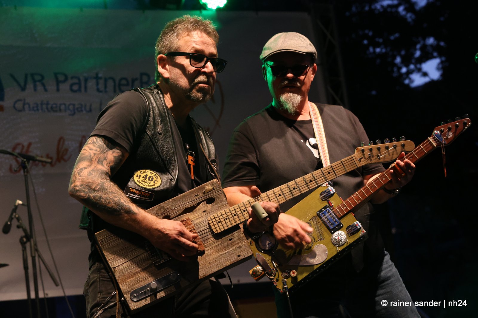 Ein Kinderkarussell alter Bauweise erfreut die jüngeren Besucher und ist auch abends noch frequentiert. Zum Auftakt am Freitag hat Mike Gerhold erfolgreich dem Regen getrotzt. 3 to 1 hatten es mit ihren selbst gebauten Cigar-Box-Gitarren gestern wesentlich leichter unter heiterem Himmel. Michael Dittmar, Karsten Müller und Andreas Großmann spielten klassischen Blues und Southern Rock.